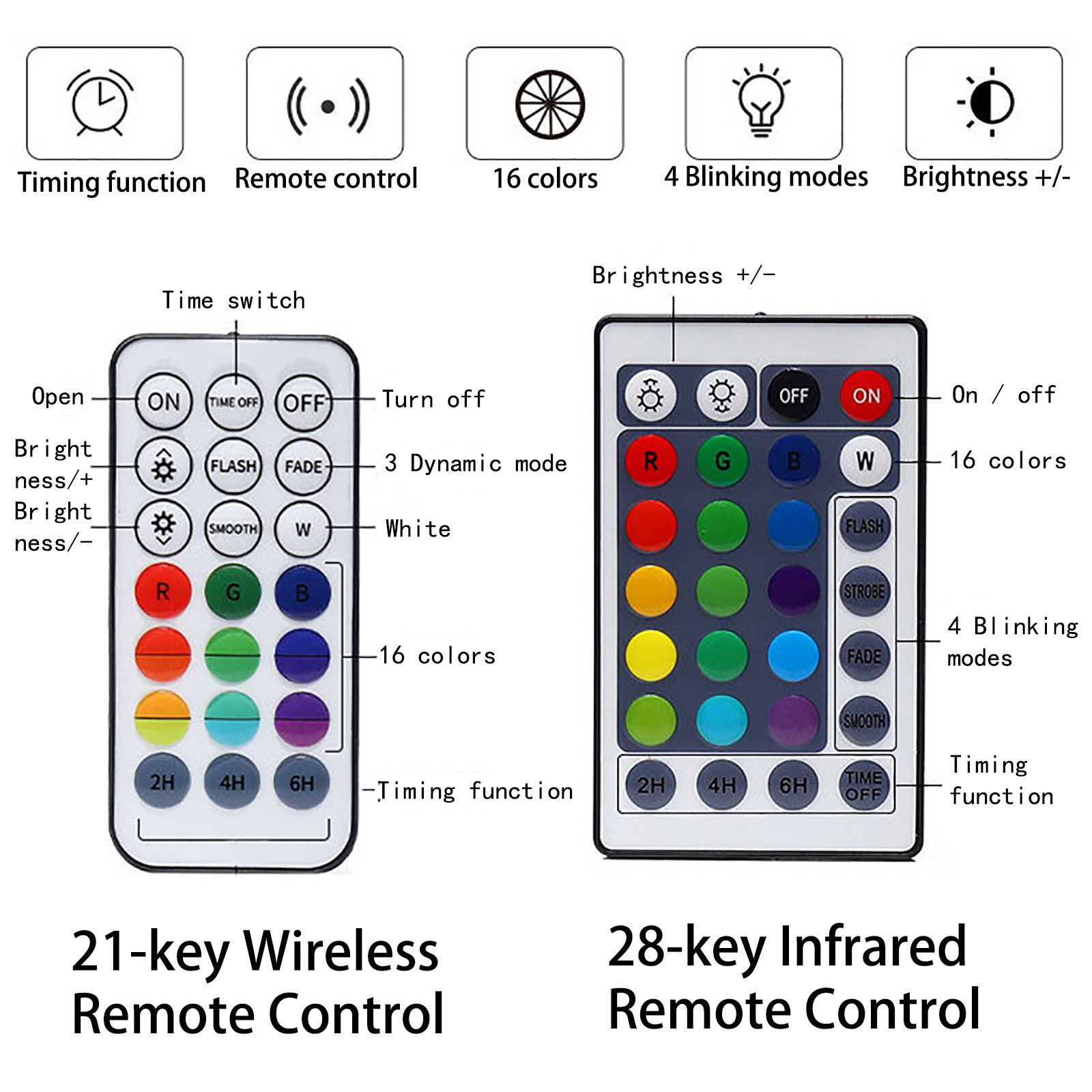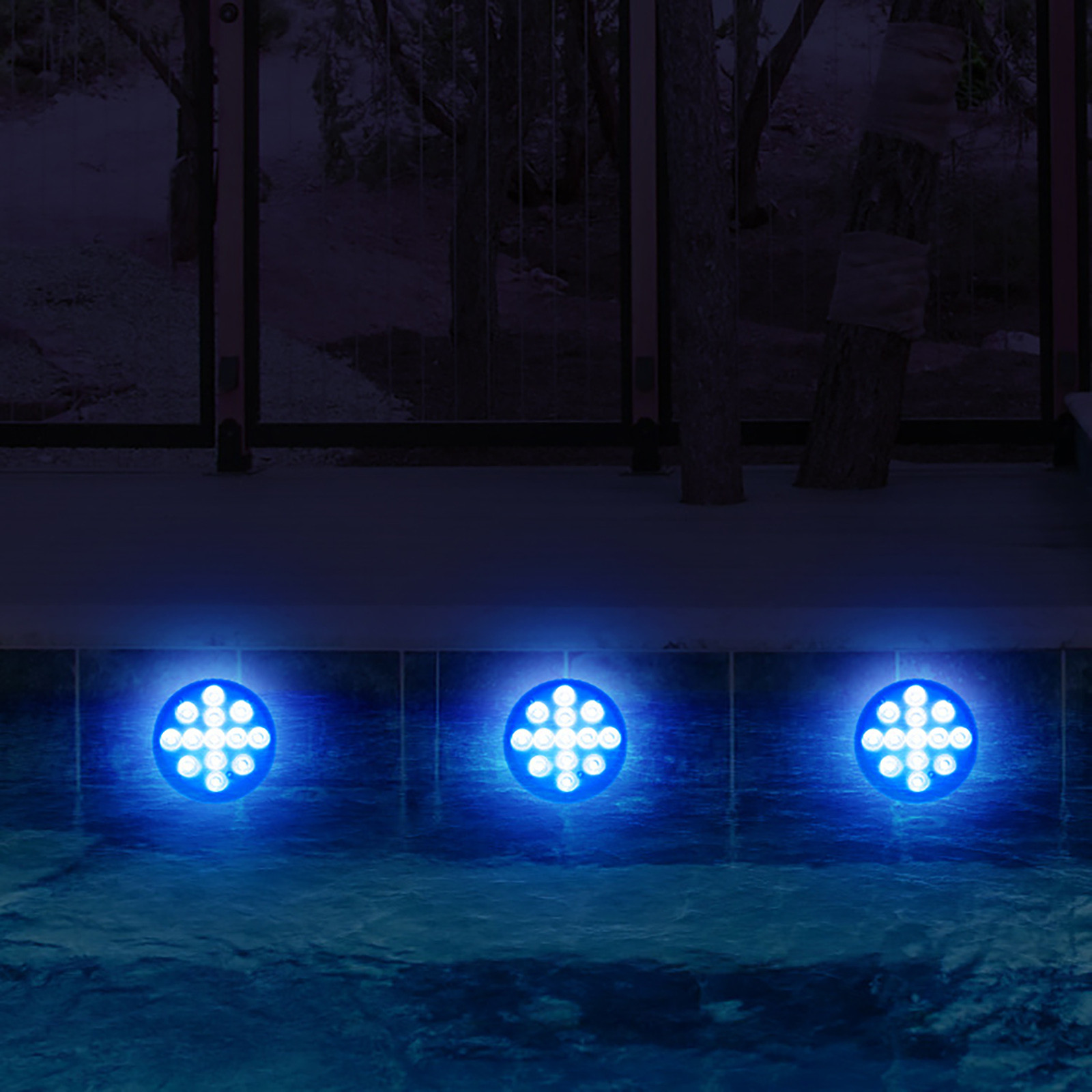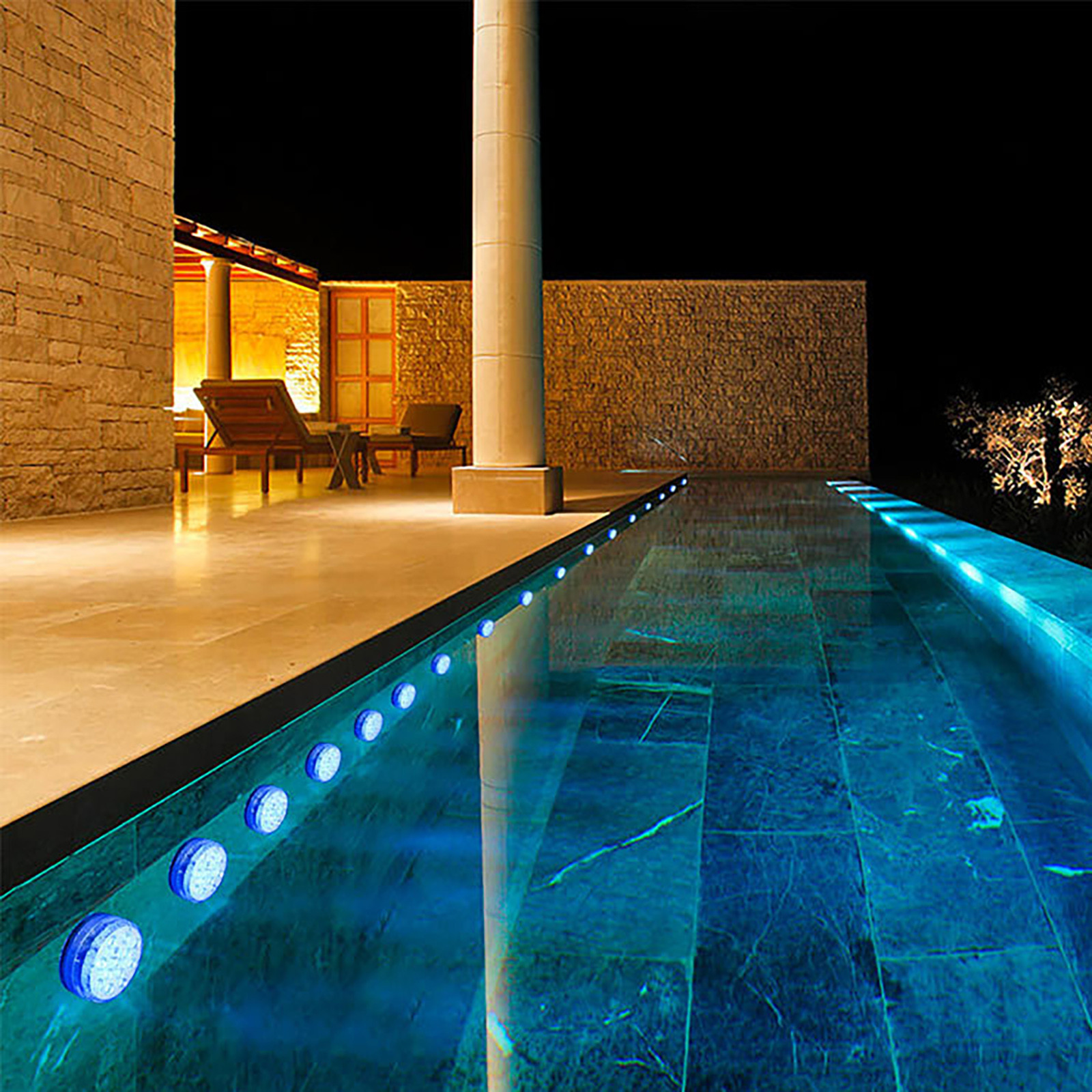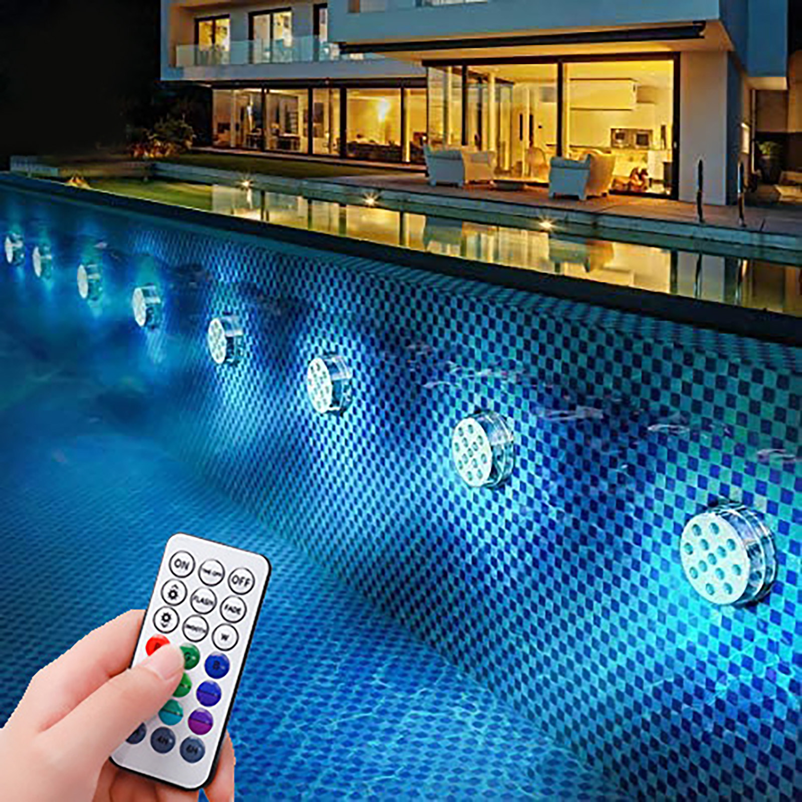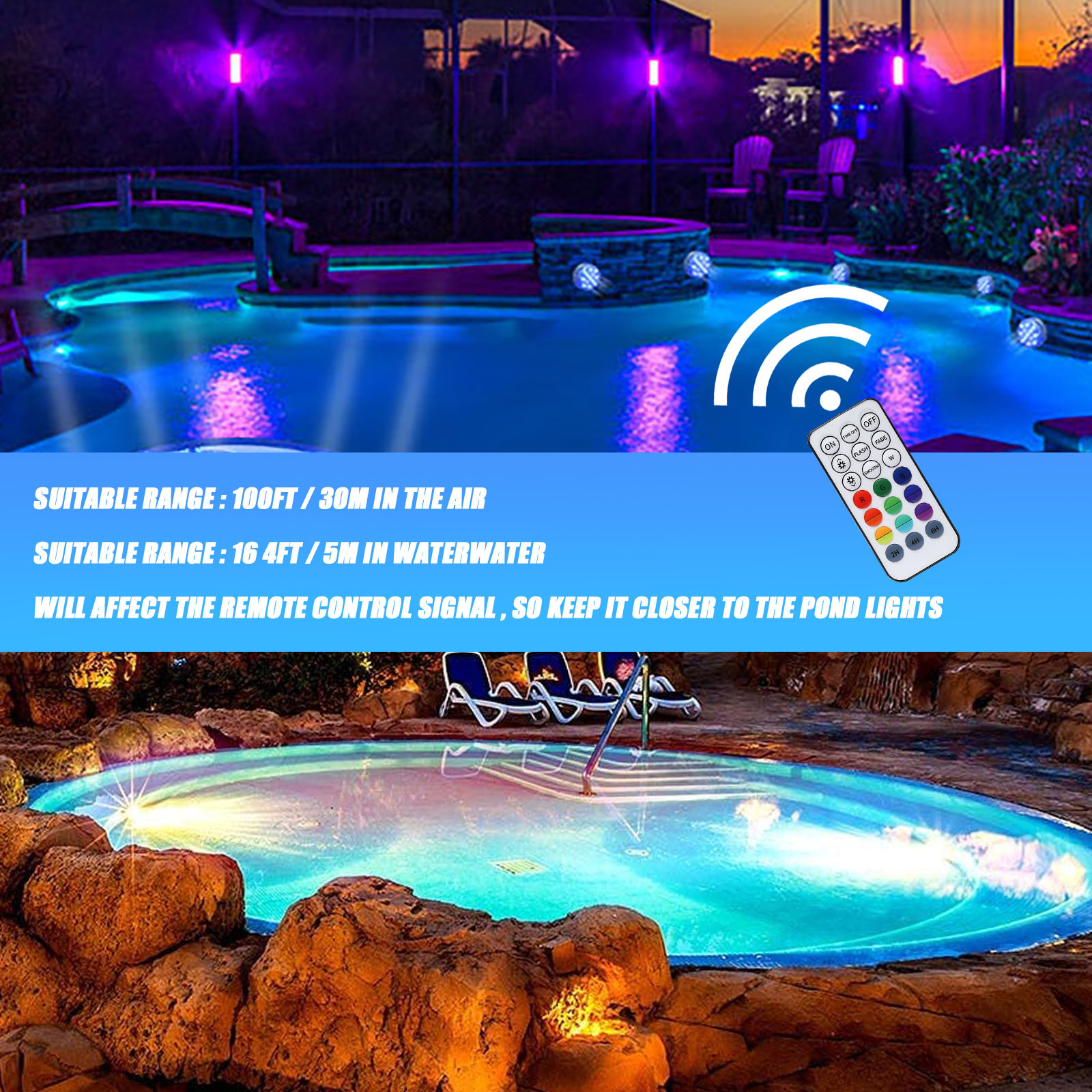 Подводные огни с радиочастотным пультом имеют дальность действия до 98ft/30m в воздухе, 8.2ft/2,5 m в воде. ИК-пульт может управлять только в пределах 2 футов, один пульт дистанционного управления может управлять несколькими огнями, нет необходимости стремиться к освещению.