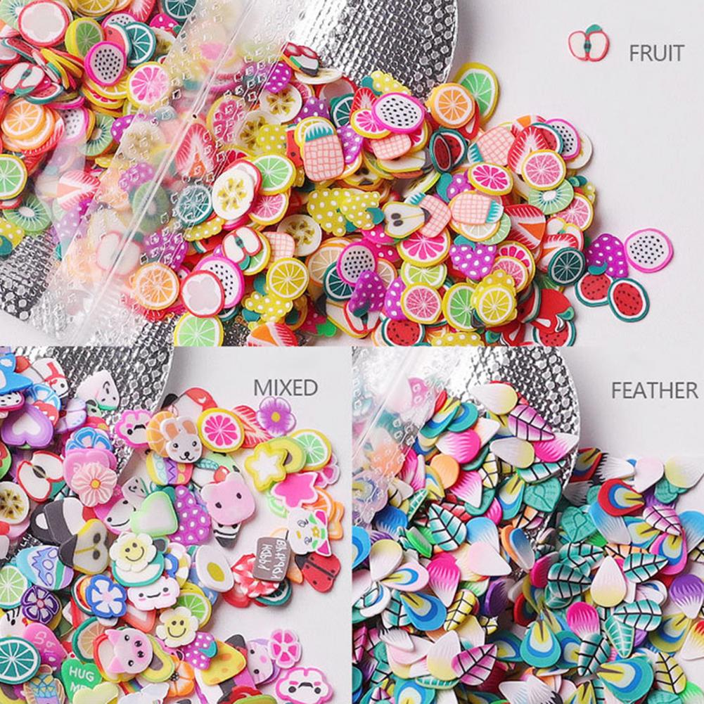 1000 шт./компл. ногтей ломтики фруктов перо Форма ультра тонкий Полимерная глина мягкого смесового нейл-арта слизи подвески для подарка