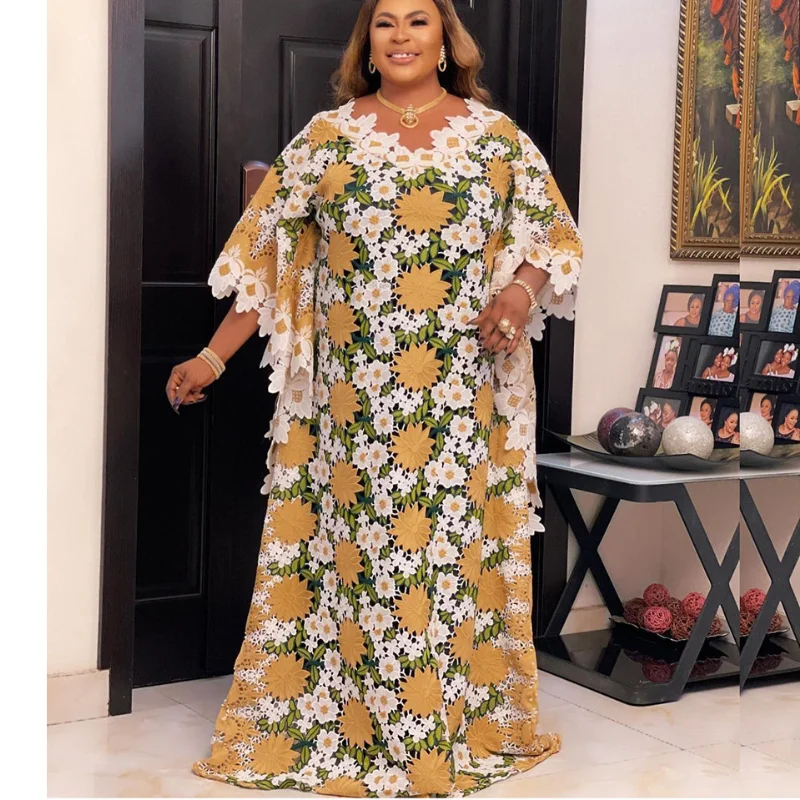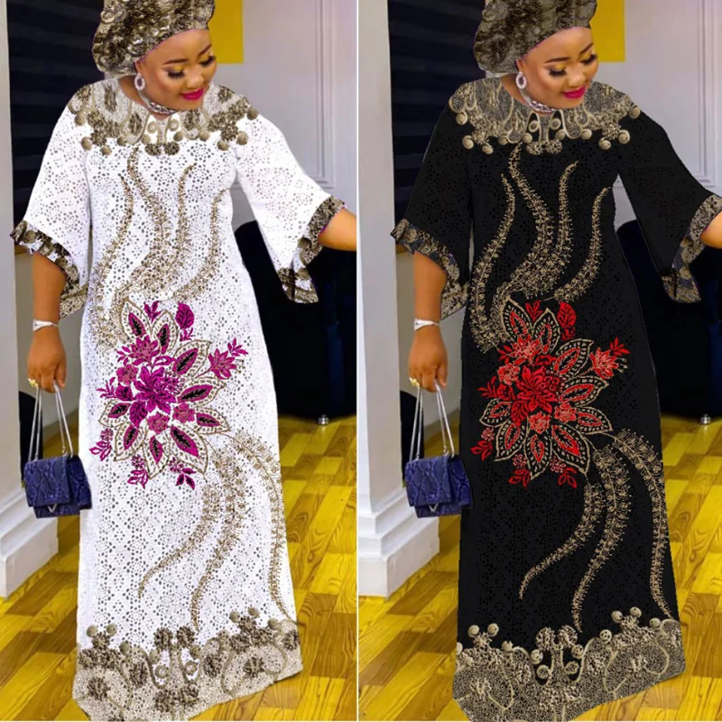 Женское длинное платье в африканском стиле; Новинка 2021 года; Модное Свободное длинное платье с вышивкой в африканском стиле; Элегантное кружевное платье