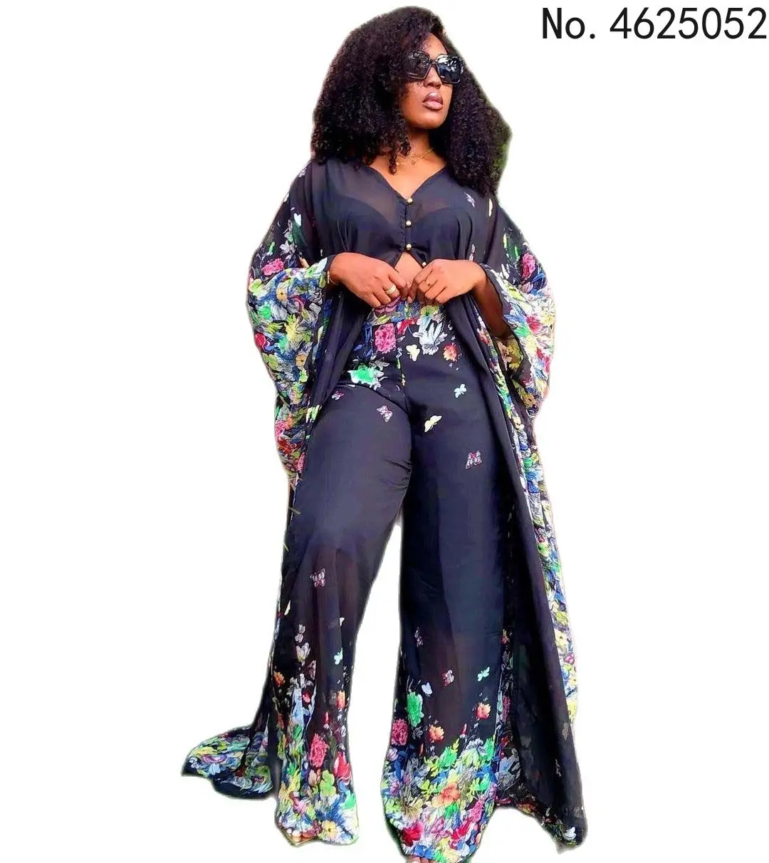 Одежда в африканском стиле для женщин; Коллекция 2021 года; Летние комплекты из трех предметов для женщин в африканском стиле; Большие размеры (пальто + внутренняя часть + штаны); Одежда в африканском стиле