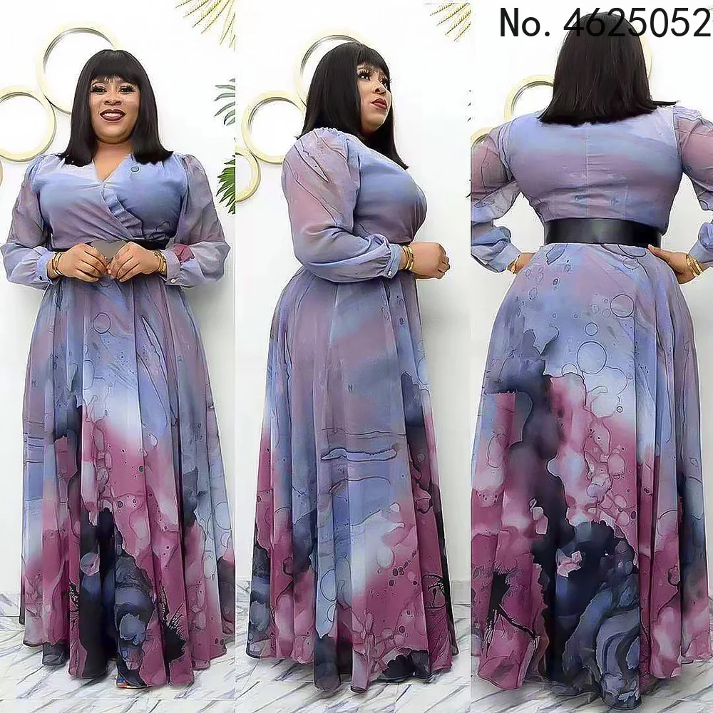 Осень 2021 Новое Африканское женское платье с длинным рукавом и v-образным вырезом с принтом из полиэстера африканские платья для женщин африканская одежда