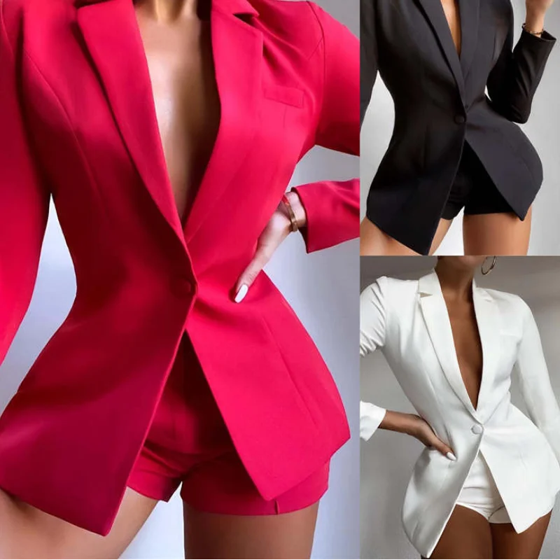 Однотонный блейзер с зубчатым воротником, костюм, пальто и шорты, комплект, шикарный повседневный элегантный уличный комплект из 2 предметов для женщин