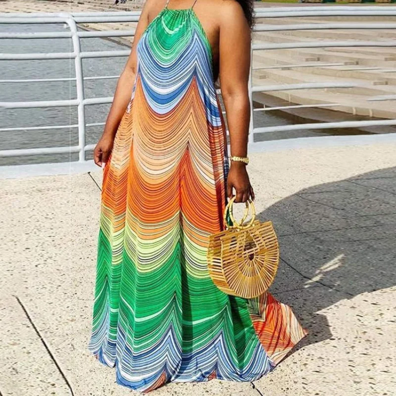 Женские платья в полоску, свободные, большие размеры, с круглым вырезом, повседневные, модные, летние, Осенние, цветные, с принтом, новинка 2021, Длинная женская одежда, XXXL