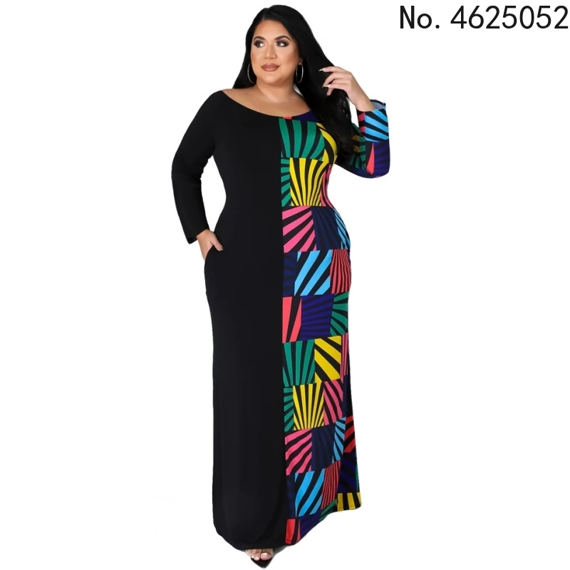 Женское длинное платье-макси в африканском стиле с традиционным принтом Дашики, большие размеры