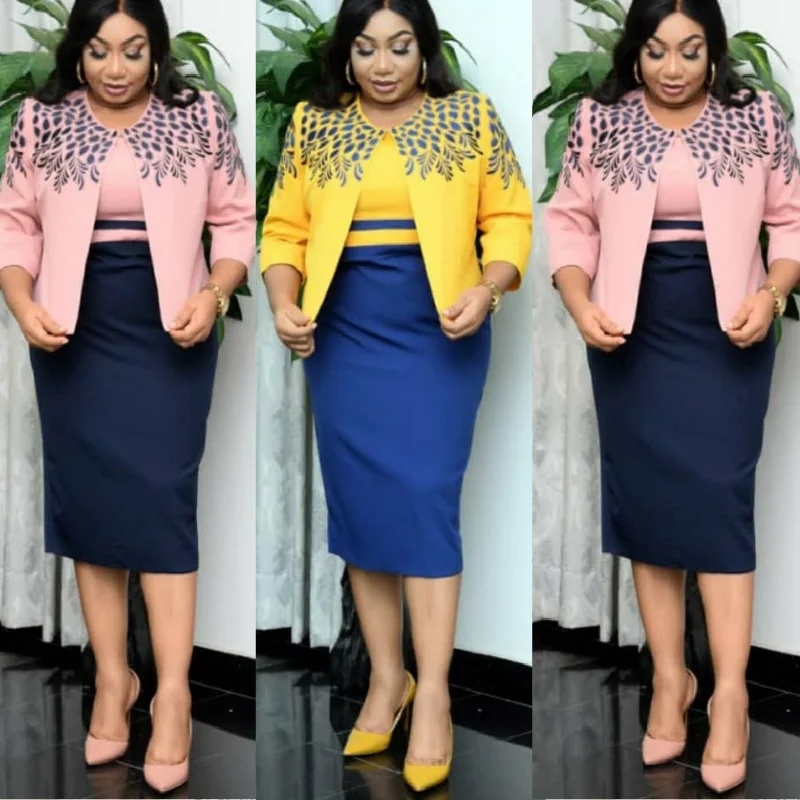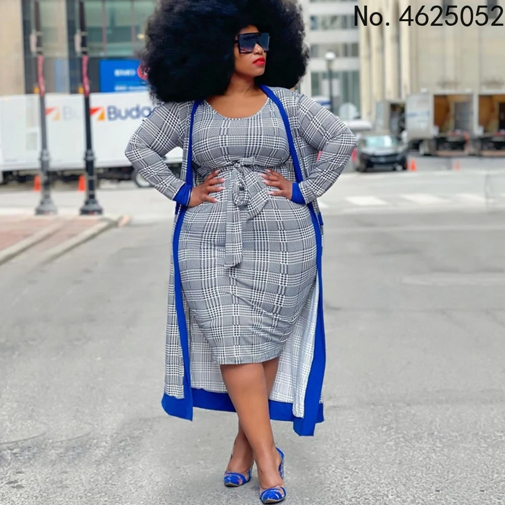 5XL 6XL размера плюс комплект из двух предметов, Женское пальто + облегающее платье, комплекты одежды, африканские платья для женщин, осень 2021, Vestidos Robe Femme