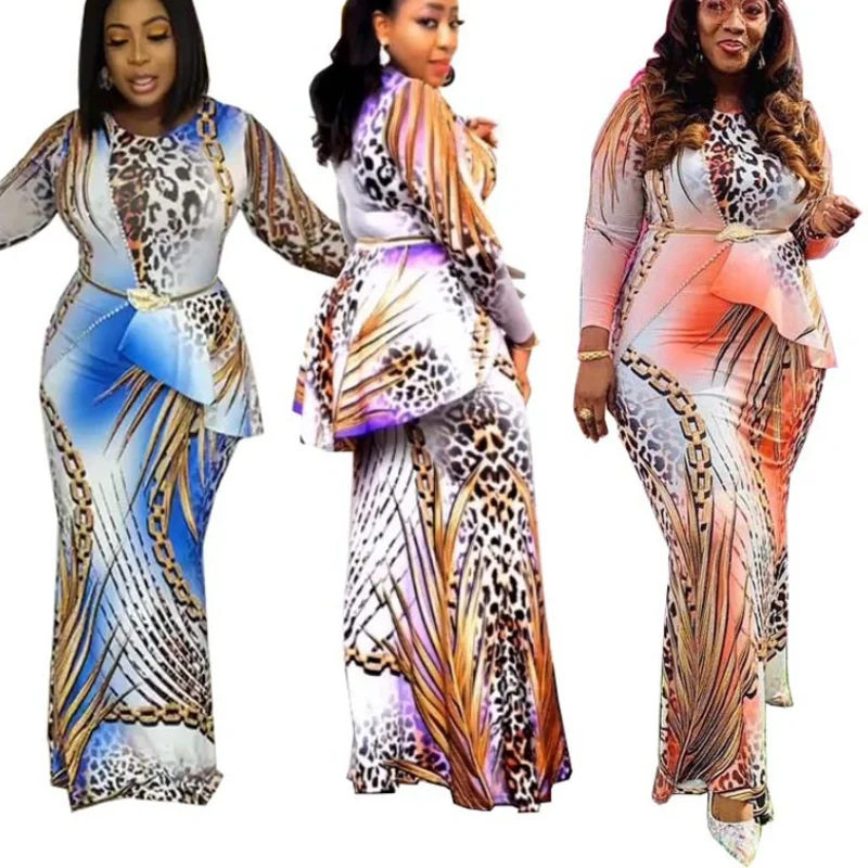 2021 Новое Вечерние Платье макси с длинным рукавом африканские платья для женщин Robe Femme Vestidos Лето Осень леопардовое платье бодикон
