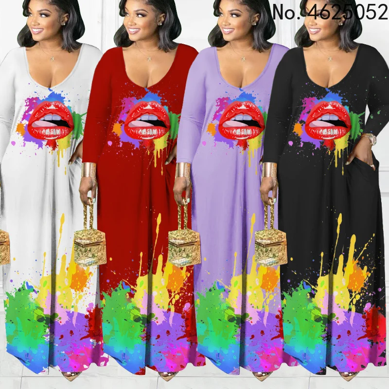 Длинное платье макси с принтом, африканские платья для женщин, 2021, африканская одежда, Дашики, Струйные губы, Abaya, Дубай, Boubou Robe, Africaine Femme