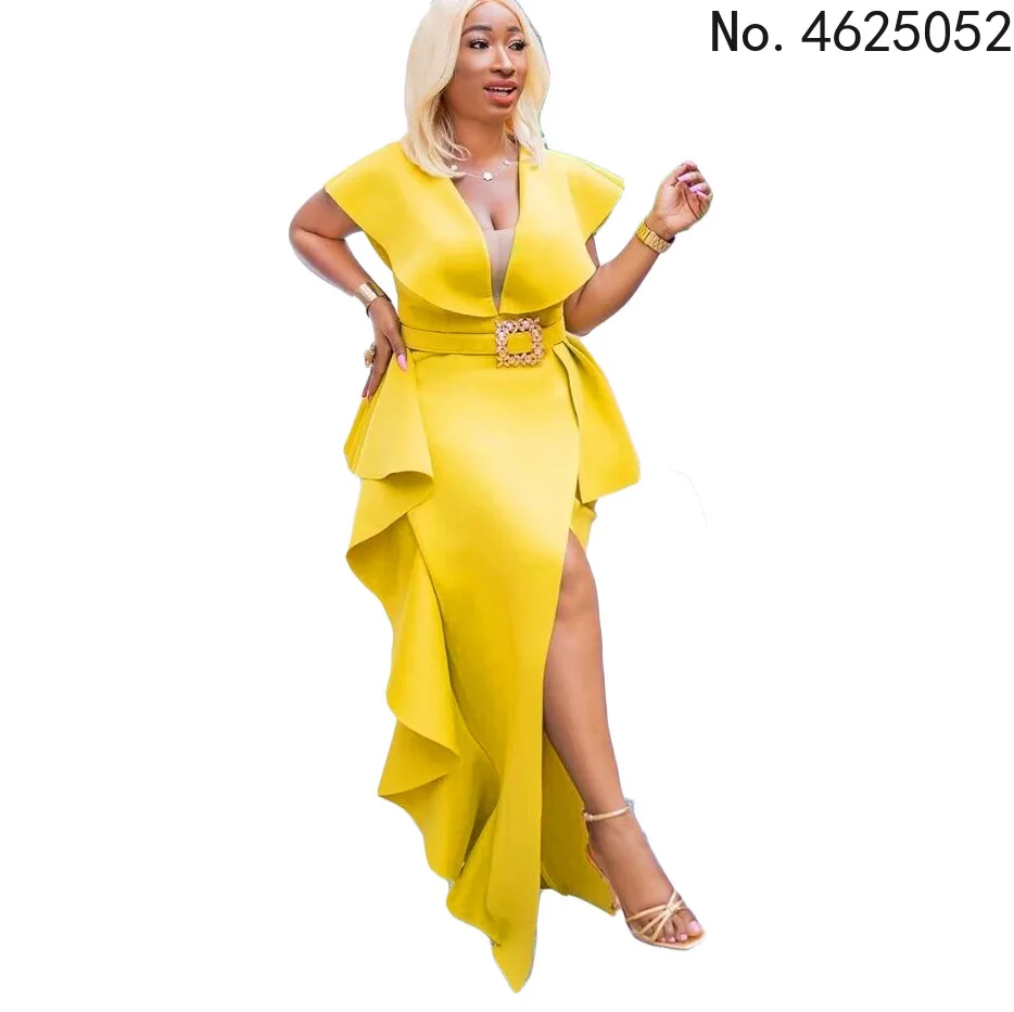 Длинные африканские платья для женщин 2021 облегающее платье макси африканская одежда Дашики сексуальное платье с высоким разрезом и v-образным вырезом