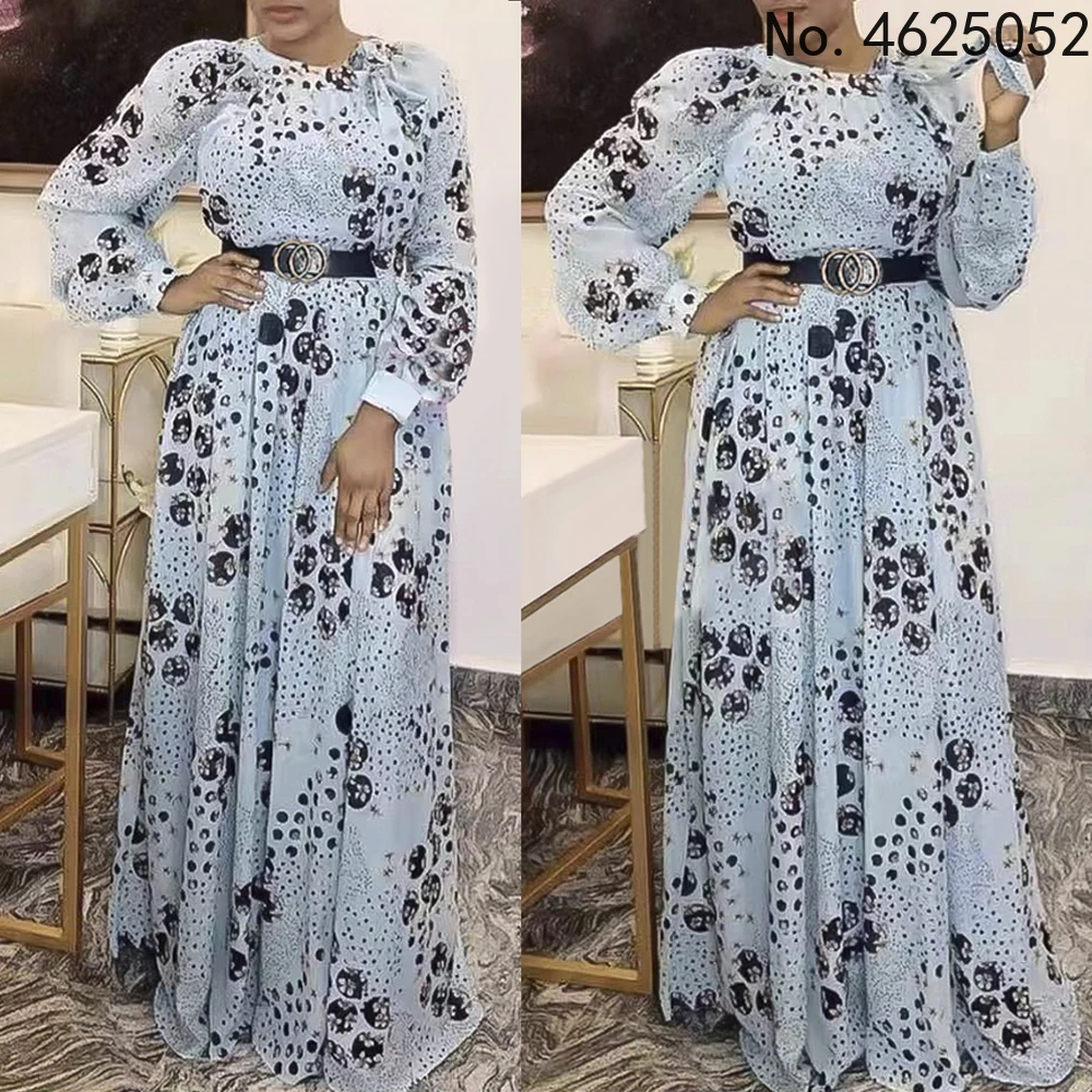 2021 Новое поступление, Летнее Длинное Платье в африканском стиле с длинными рукавами и круглым вырезом, платья в африканском стиле для женщин