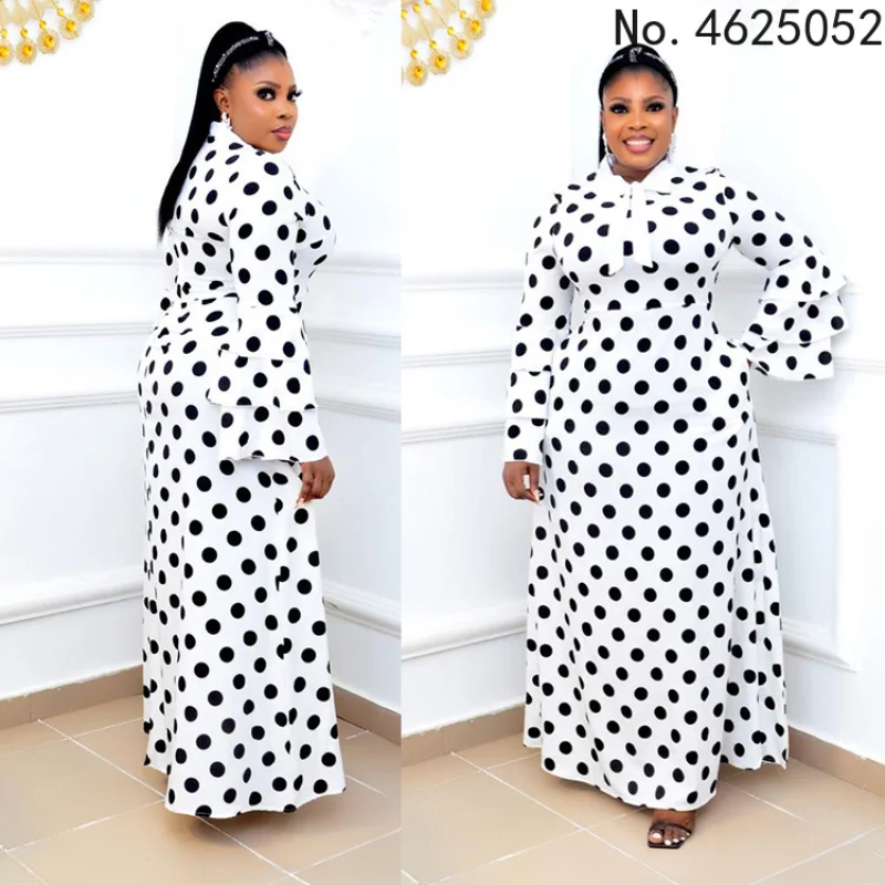 Черные африканские платья макси в горошек с принтом, женское шифоновое платье с длинным рукавом, комплект из 2 предметов, мусульманские Модные Вечерние Платья
