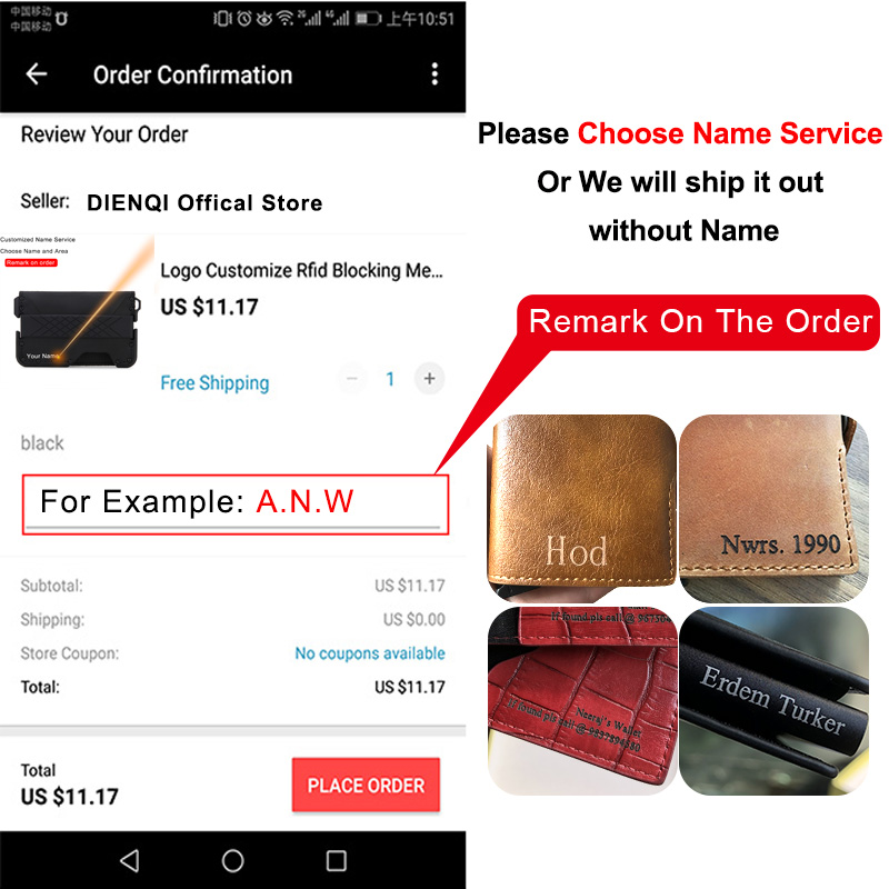 1.Пожалуйста, укажите свое имя в течение 24 часов или мы добавим имя получателя на бумажнике.
