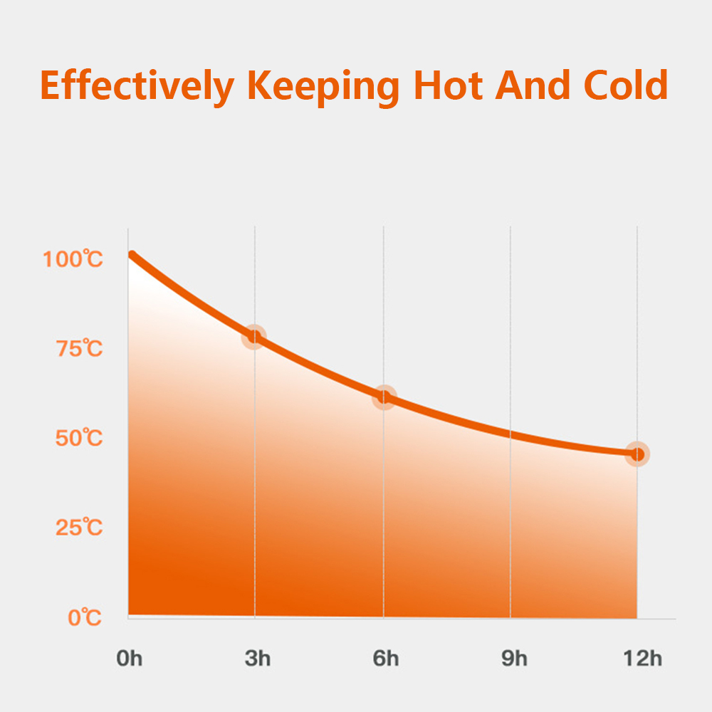 2. Изготовлен из нержавеющей стали 304, двухслойный вакуумный дизайн, безопасный, без BPA и экологически чистый, без запаха и легко моется. Он может держать горячую или холодную воду в течение 12 часов.