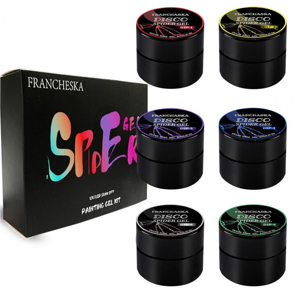 6Pcs/Set 8ml Nail Spider Gel Soak Off Quick Dry Portable Varnish Drawing 3D Manicure Disco Spider Gel for Beauty
