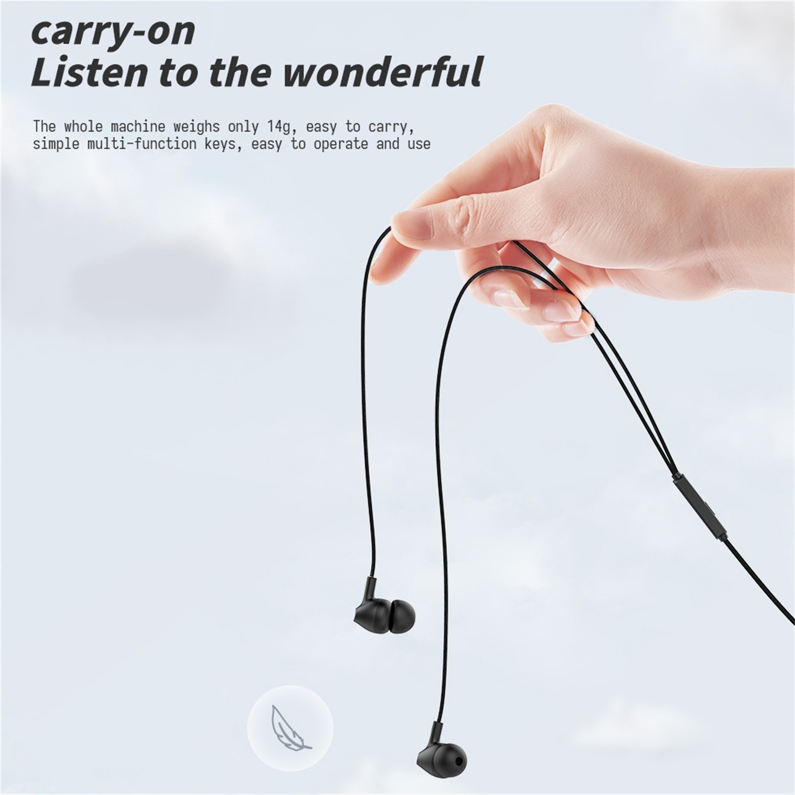 Three-dimensional surround, immersive enjoyment Ergonomic design, with soft silicone material, more comfortable to wear Lightweight design, carry it with you, listen to the excitement After the tensile test, the earphone is sturdy and durable, and the winding problem is easier to solveSpecifications: