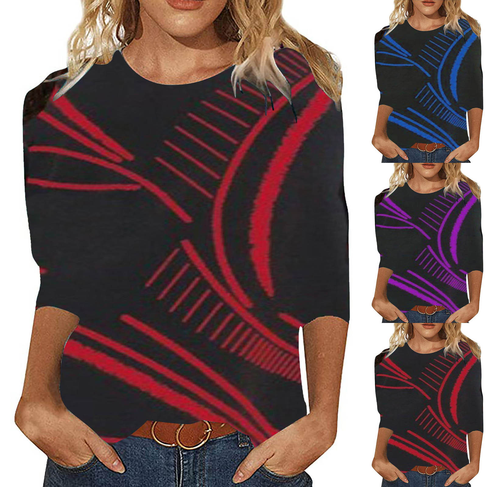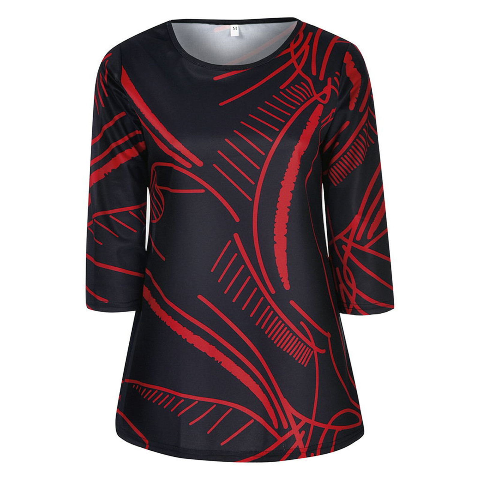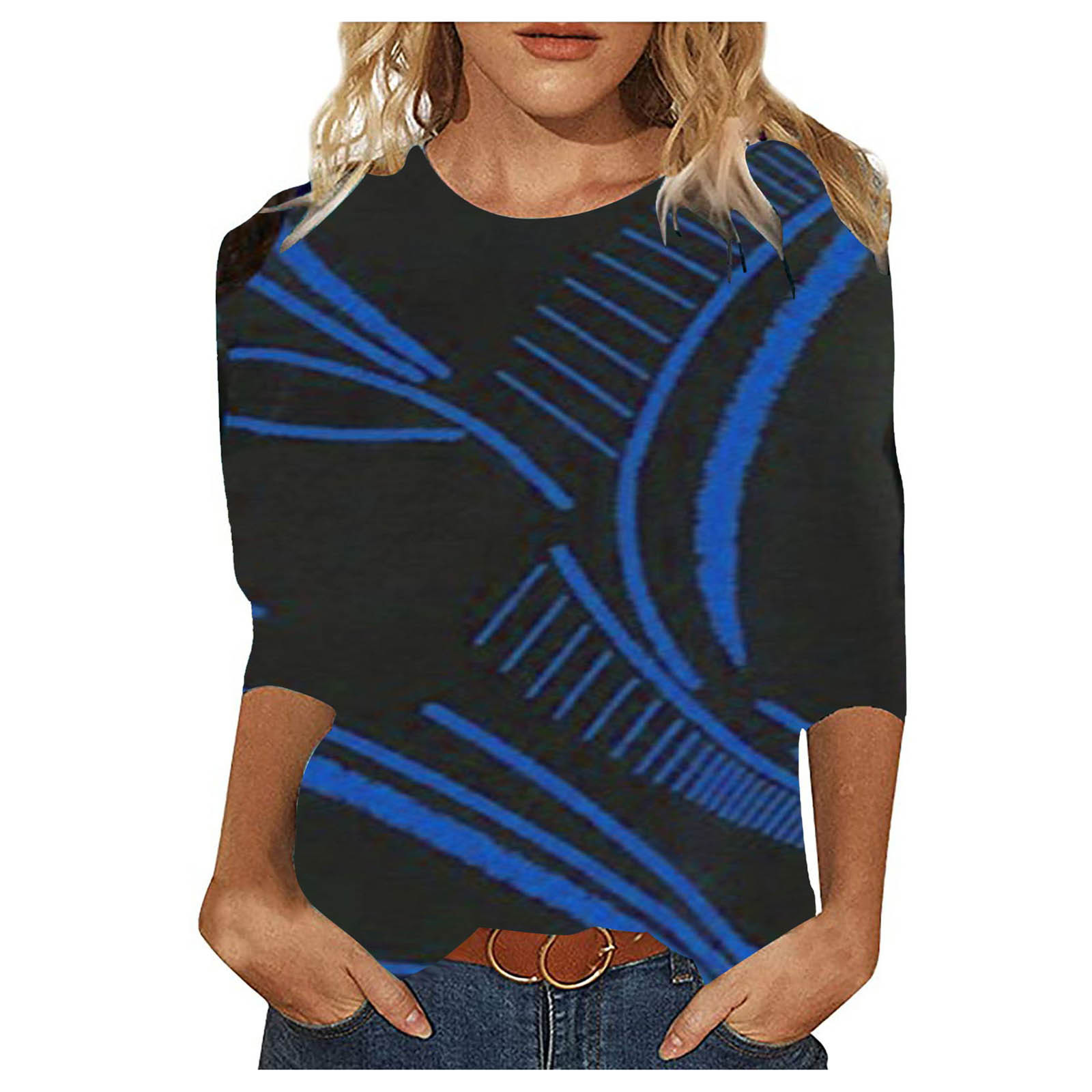 Женская Повседневная Тонкая блузка с круглым вырезом и рукавом 3/4, Дамская с цветочным принтом
