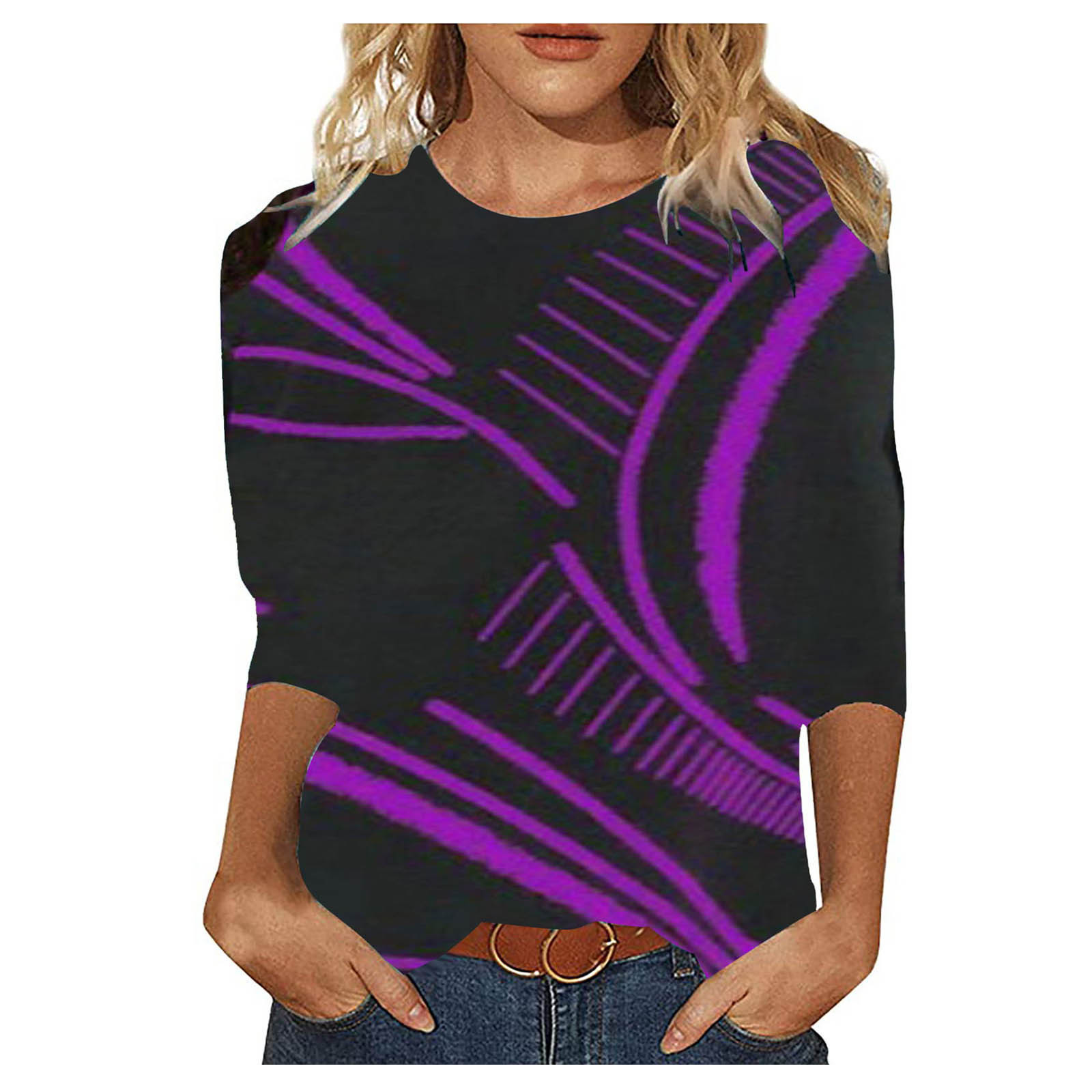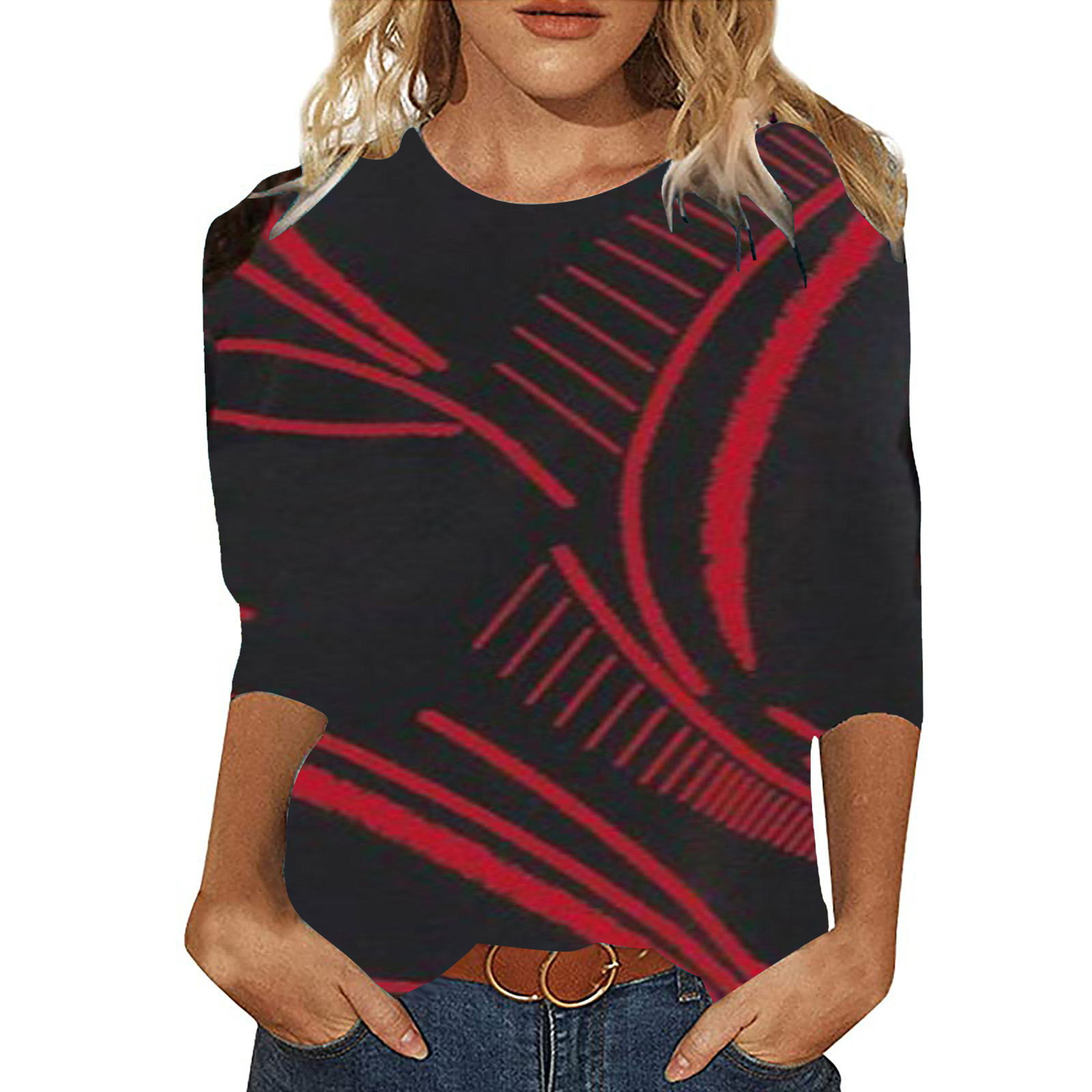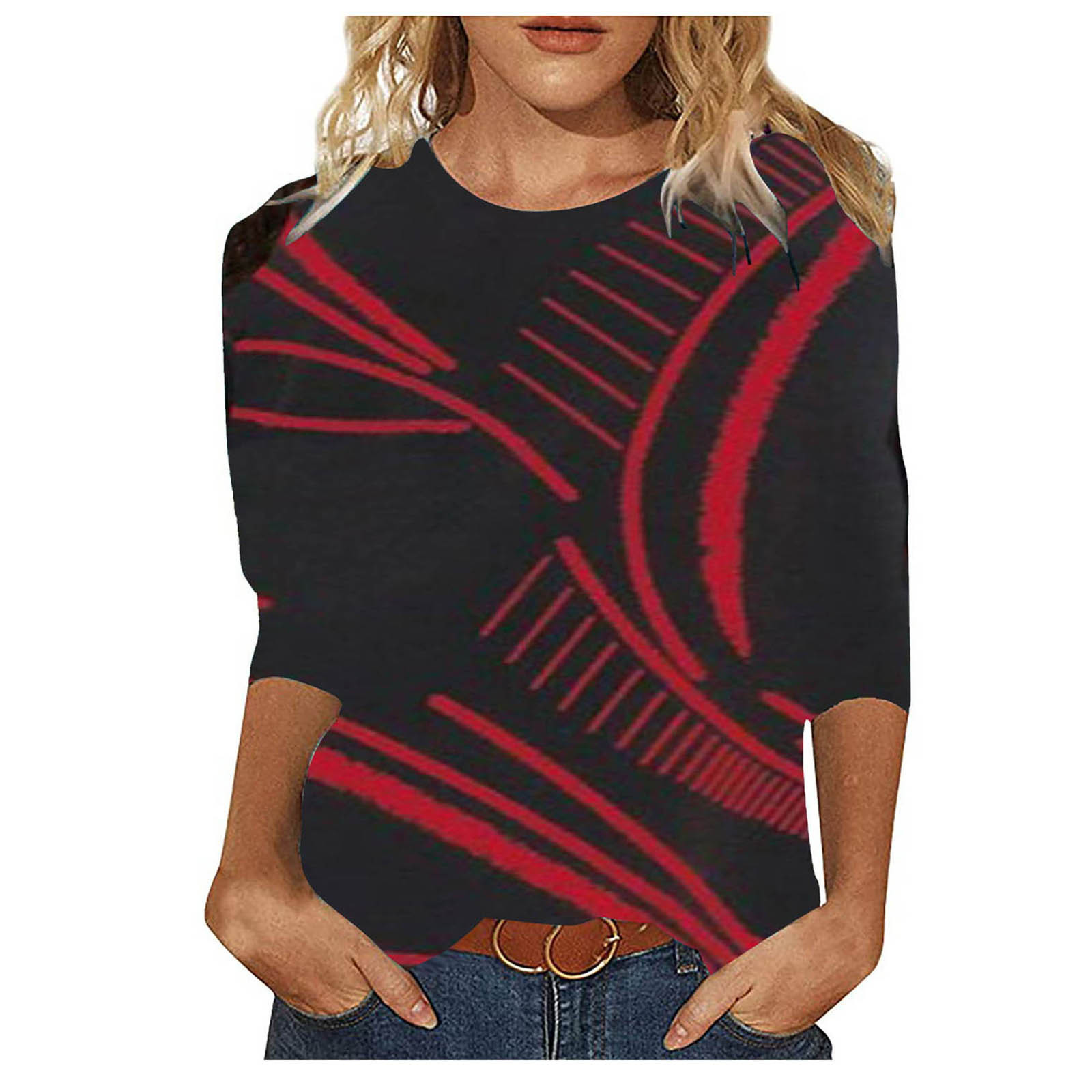 Женская Повседневная Тонкая блузка с круглым вырезом и рукавом 3/4, Дамская с цветочным принтом