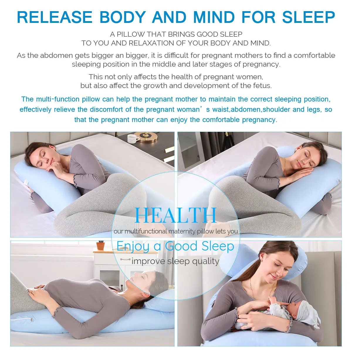 Эта уютная подушка для всего тела идеально подходит для того, чтобы дать ожидающим мам расслабляющий сон, который им нужен, смягчая обычные дискомфорт при беременности.Эта Подушка для беременных, предназначенная для контурного контура всего тела, позволяет беременным матерям спать на боку, лучшее положение для мамы и ребенка. Также отлично подходит после того, как ребенок прибудет, эта мягкая Милая подушка обеспечивает поддержку удобных мест для кормления. Легко формованные в различных формах, плотно прилегают к этой подушке.Он будет поддерживать спину, бедра, колени, шею и голову, чтобы облегчить боль и дискомфорт, связанные с беременностью, ишиатикой, фибромиалгией, рефлюксом желудка и многое другое.Параметр:Ткань наволочек: 100% бархат/хлопокНаполнитель: полиэстерПружинный Размер: около 60*120 смРазмер наволочки: прибл. 130*70 смПодходит для людей ростом 166 см (65, 35 дюймов/5,45 футов) или меньше.Характеристики: антистатический, охлаждающий, анти-храпОбеспечивает комфорт для бокового сна и сохраняет плавность для лучшей производительности и более длительного использования.Посылка включает в себя:1 x чехол для подушки1 x внутренняя подкладка1х наполнение