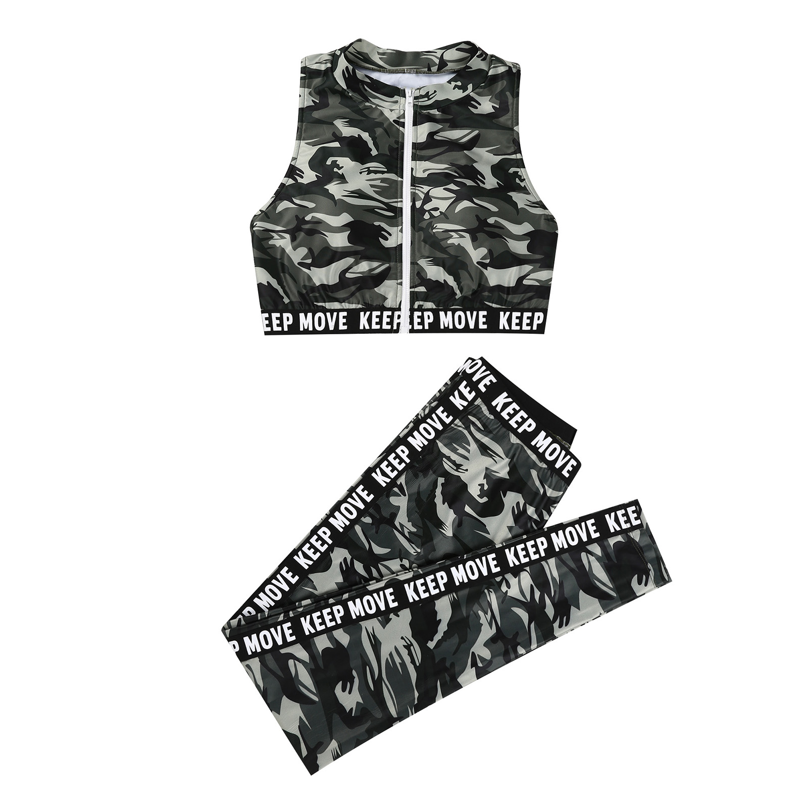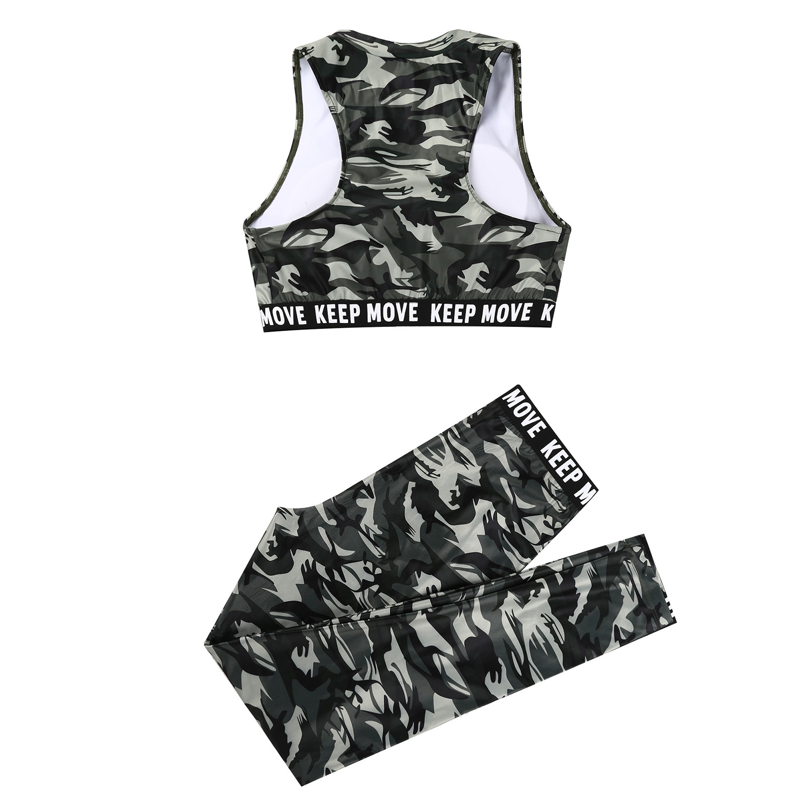 В комплекте с леггинсами с заниженной талией и рисунком в целом костюме отсутствует эластичная лента, принт на резинке с надписью «KEEP MOVE»-это дизайн под грудью топа, брюк на талии и по бокам.