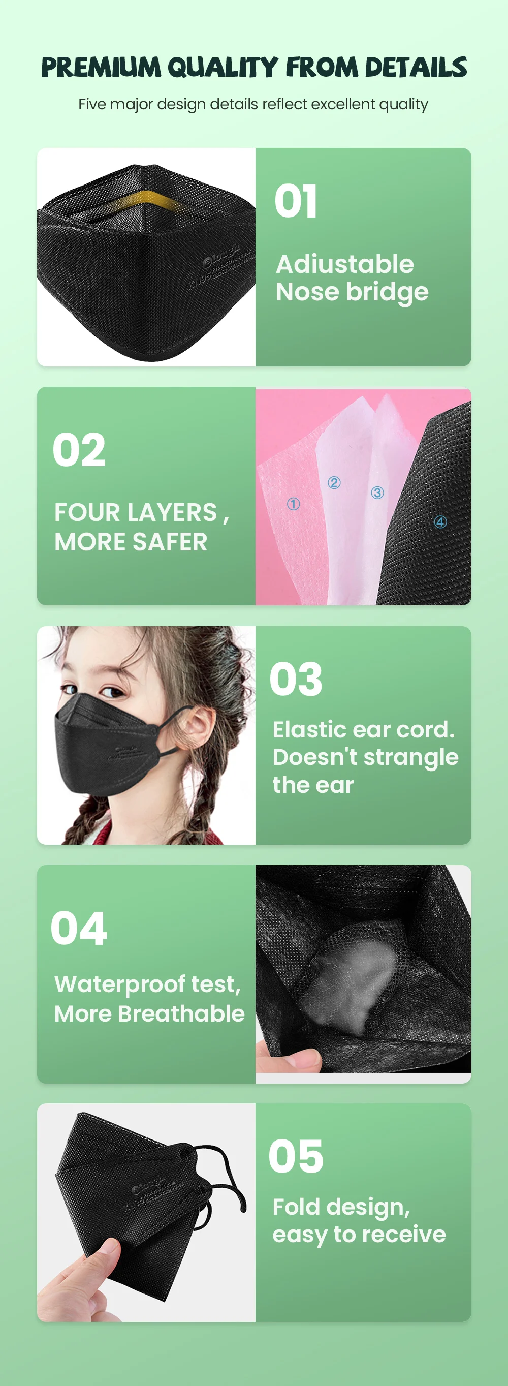 Материал: Нетканая ткань, распылитель растворителя, Теплоизоляционный хлопокВес: 5g/МаскаЦвет: ffp2 черный/ffp2 серый/синий/розовый/красный/зеленый/оранжевый/розовый/темно-синий/белый/фиолетовыйРазмеры: 18 × 6,5 смКоличество: 10 масок/упаковкаДетали товара: