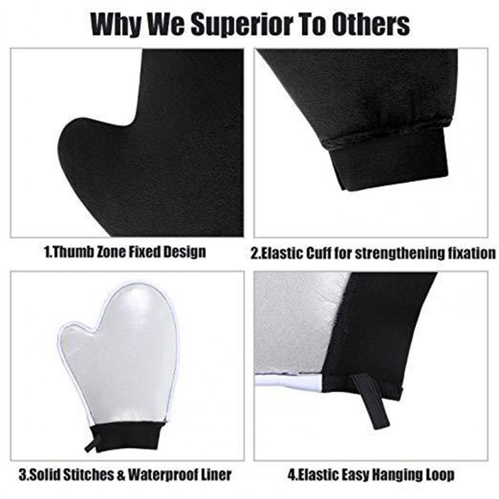 Эти перчатки для самостоятельного загара имеют встроенную высококачественную водонепроницаемую подкладку, которая может помочь предотвратить проникание лосьона для загара в перчатки во время нанесения, и нет проблем с утечкой.