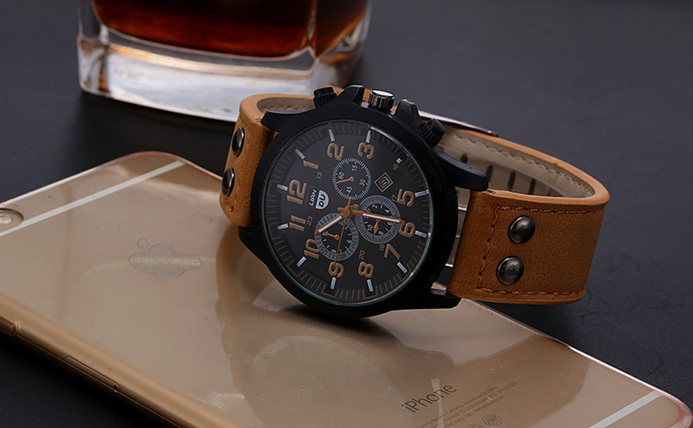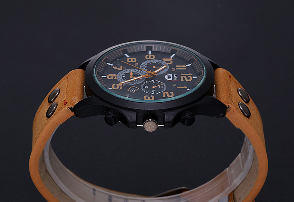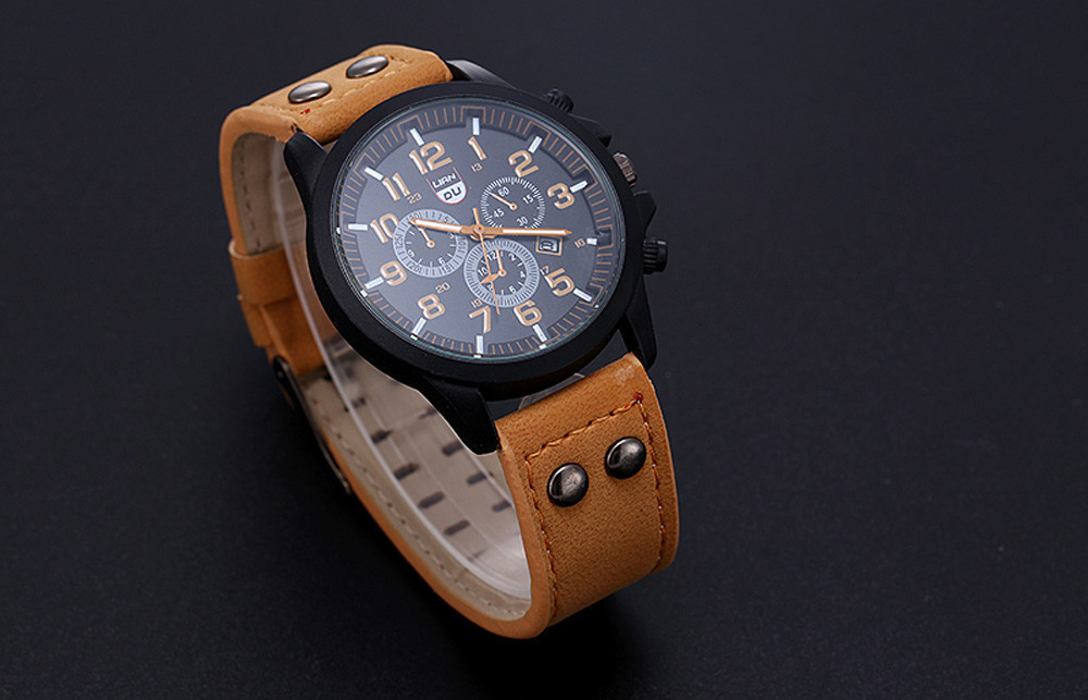 Винтажная классическая мужская водонепроницаемая Дата Спортивные кварцевые армейские часы с кожаным ремешком