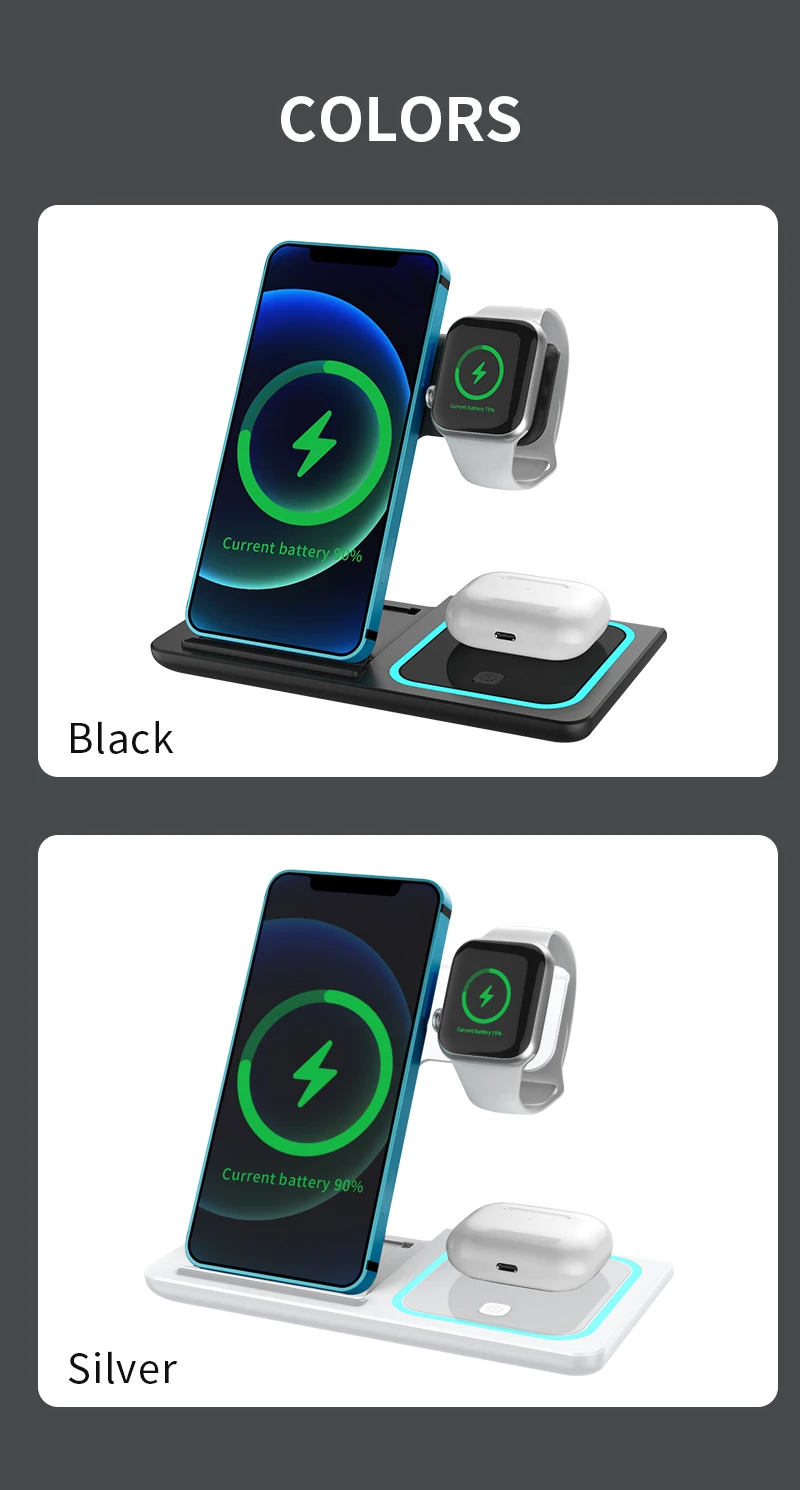 Совместим с сотовыми телефонами/Apple Watch/bluetooth-наушниками и другими устройствами с функциями беспроводной зарядки, встроенный Ночной светильник, беспроводная Быстрая зарядка 15 Вт