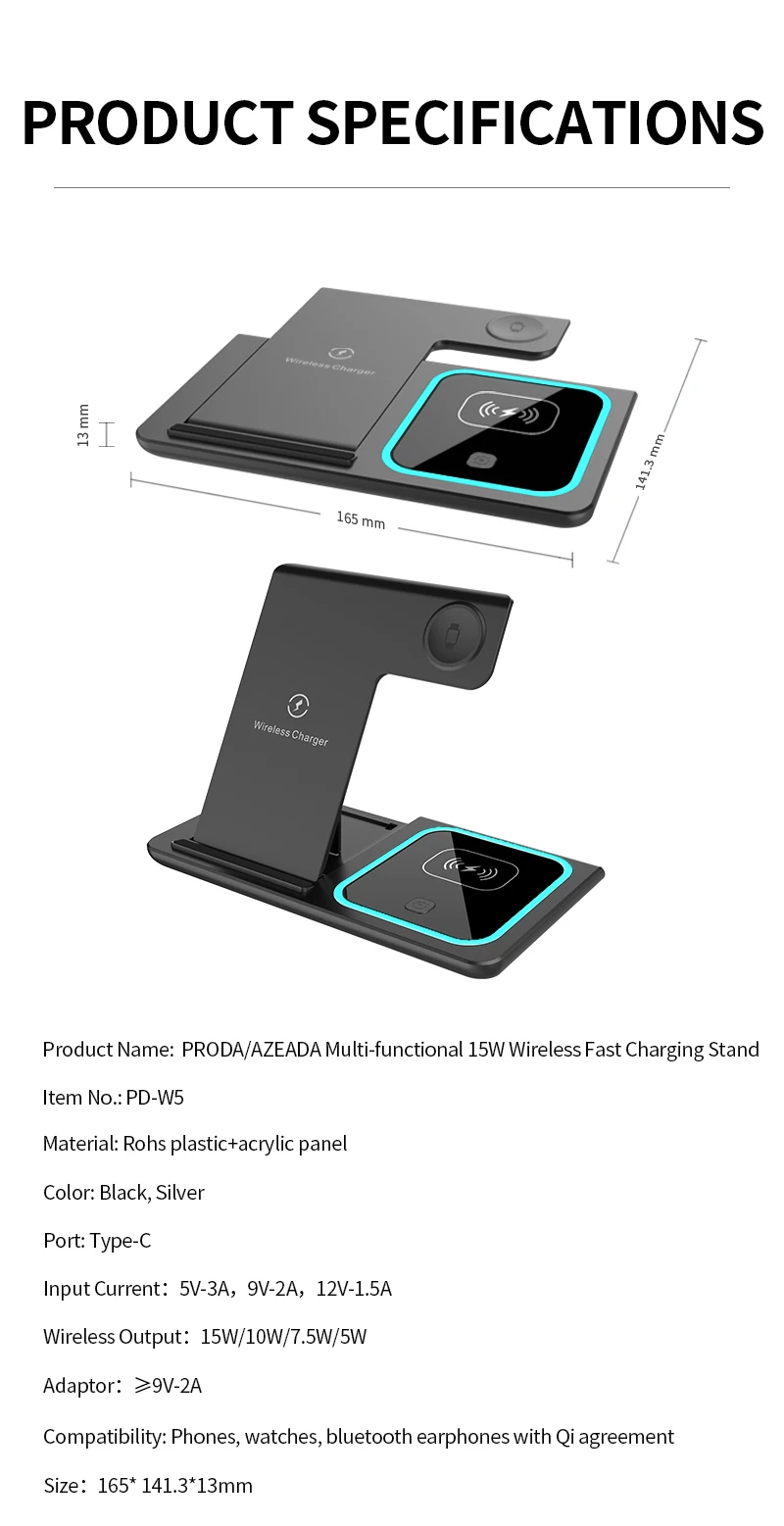 Название продукта: PRODA/AZE ADA Многофункциональная Беспроводная подставка для быстрой зарядки 15 Вт