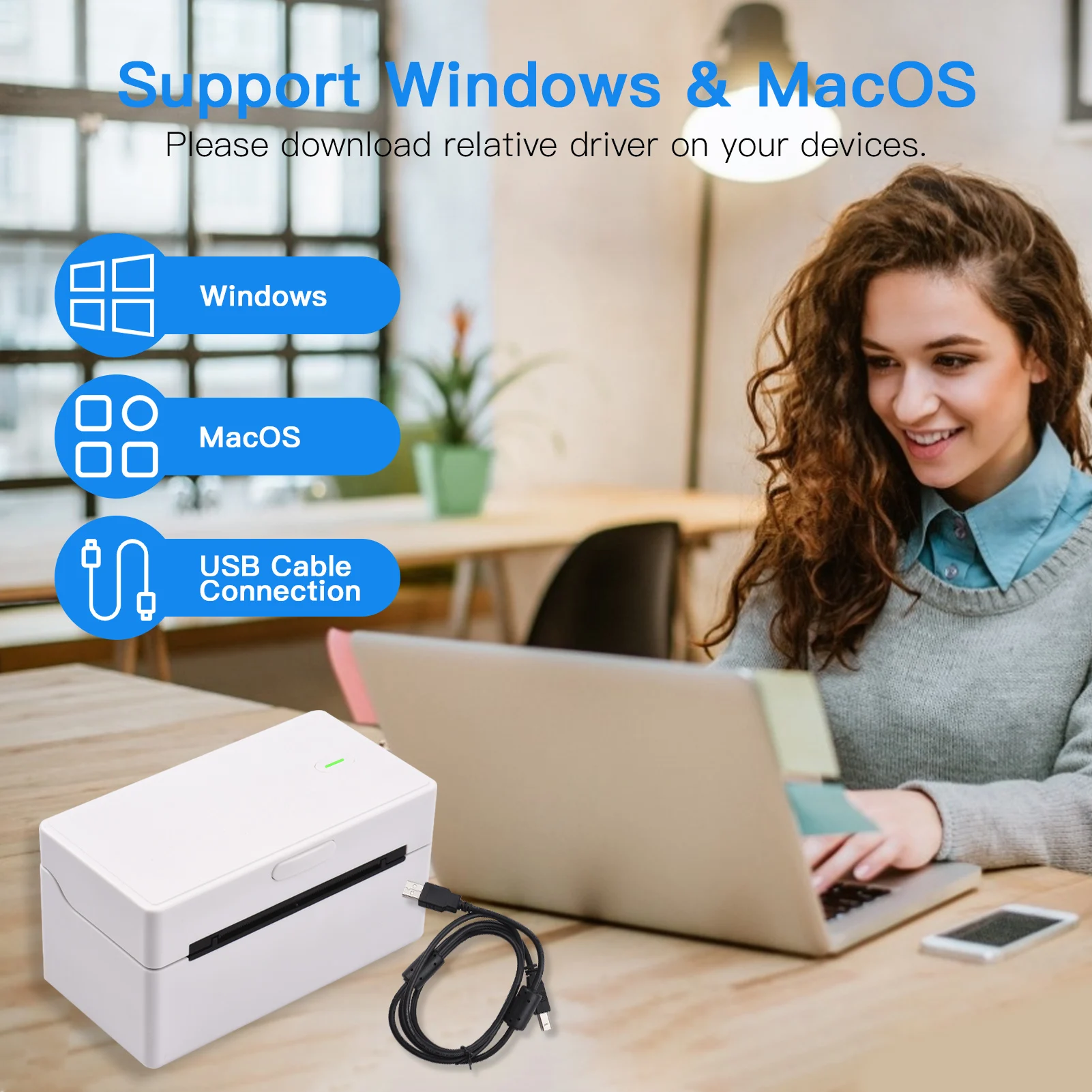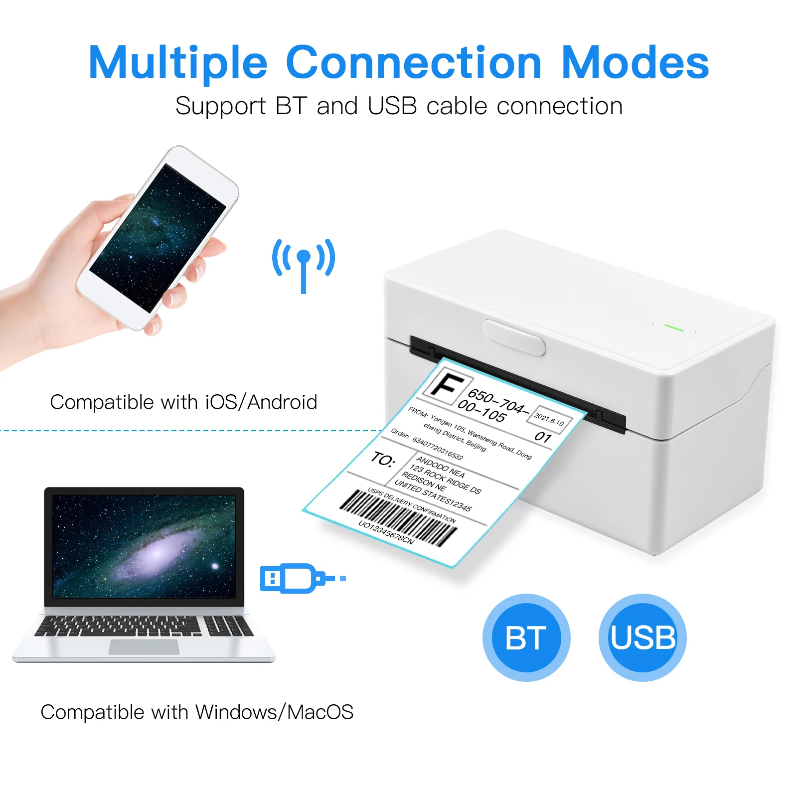 【Сильная Совместимость 】:TDL401 Настольный Термопринтер для этикеток, поддержка BT, подключенная к смартфону/планшету, и usb-кабель, подключенный к ПК или ноутбуку. Совместимость с системой Win2003/WinXP/Win7/WIN8/WIN10/MAC/iOS/Android. Загрузите относительное программное обеспечение и драйвер на своих устройствах.