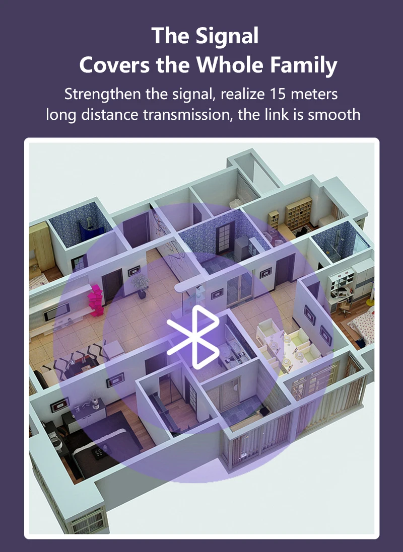 6. Рабочий диапазон: до 15 м (без каких-либо блокирующих объектов)