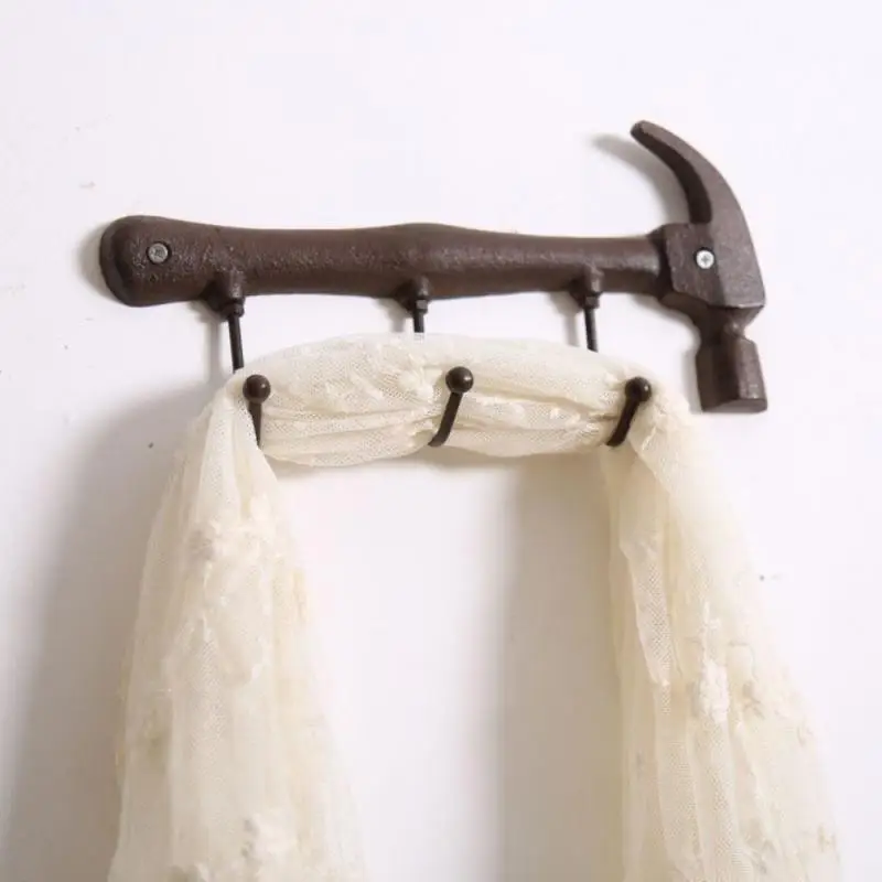 1 шт., винтажный настенный крючок, вешалка для ключей, вешалка для одежды, настенный держатель для пальто, 3 крючка, металлический крючок в форме молотка для домашней спальни
