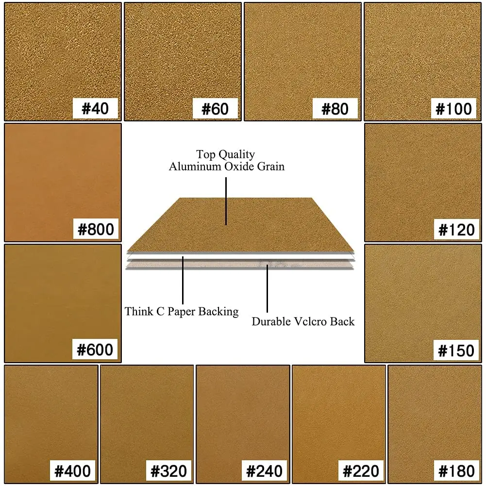 Предварительно пробитый с 17 отверстиями для эффективного извлечения пыли. Он может быть однородным-Высокоточный шлифовальный, исключительное Золотое стеаратовое покрытие с противозасоряющими и не загружаемыми свойствами, а также шлифовальный абразив, который является влагостойким и термостойким. Конструкция Velcro для более быстрой и легкой установки и удаления наждачной бумаги, также не отпадет при установке в использовании.