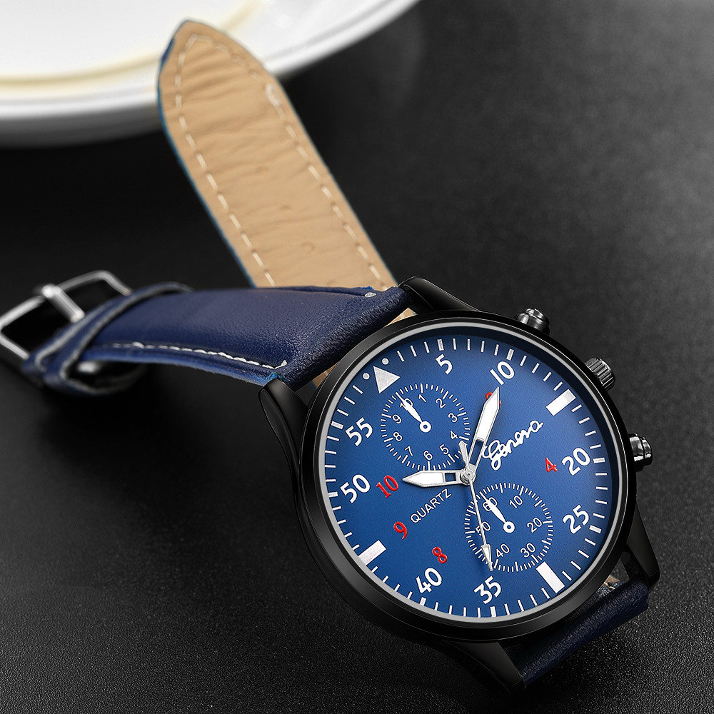 Роскошные мужские кварцевые наручные часы с кожаным ремешком, аналоговый тонкий циферблат, повседневные