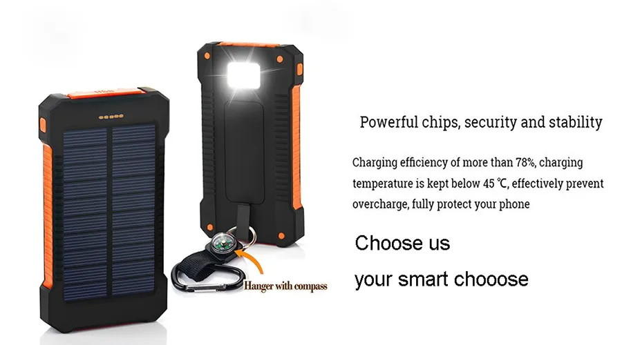 Cncncool солнечное зарядное устройство водонепроницаемое 20000 мАч Солнечное зарядное устройство 2 USB порта Внешнее зарядное устройство Powerbank для смартфона Xiaomi со светодиодной подсветкой Прямая поставка