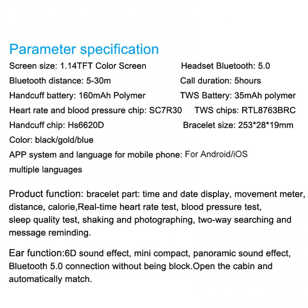 T89 TWS беспроводные Bluetooth наушники и смарт-браслет пульсометр Многофункциональный цветной экран умные часы для спорта