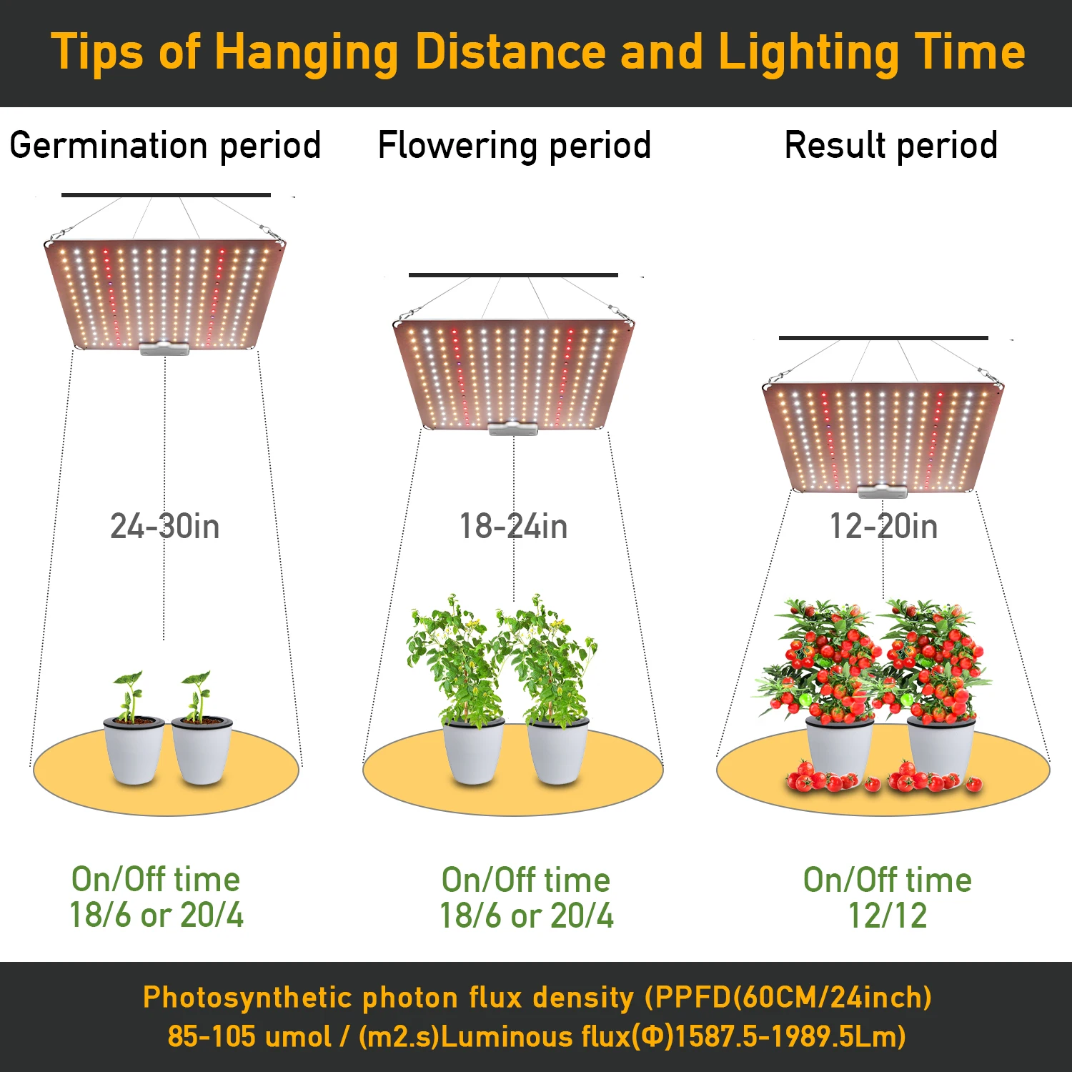 Цветущая сцена: Расстояние подвешивания: 12-24 дюйма Время освещения: 12-14 часов