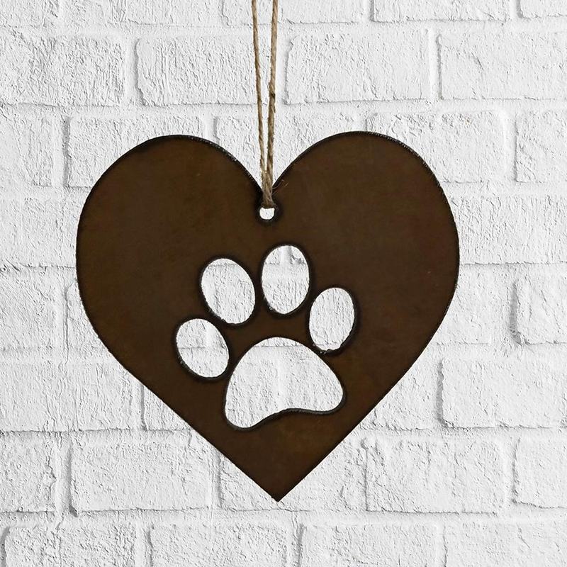 1.his lovely heart will hang will proudly in your garden showing a paw print, a little sign that you are a dog lover. The perfect gift for a loved one or yourself. Simply leave outdoors for a fabulous natural rust to form.