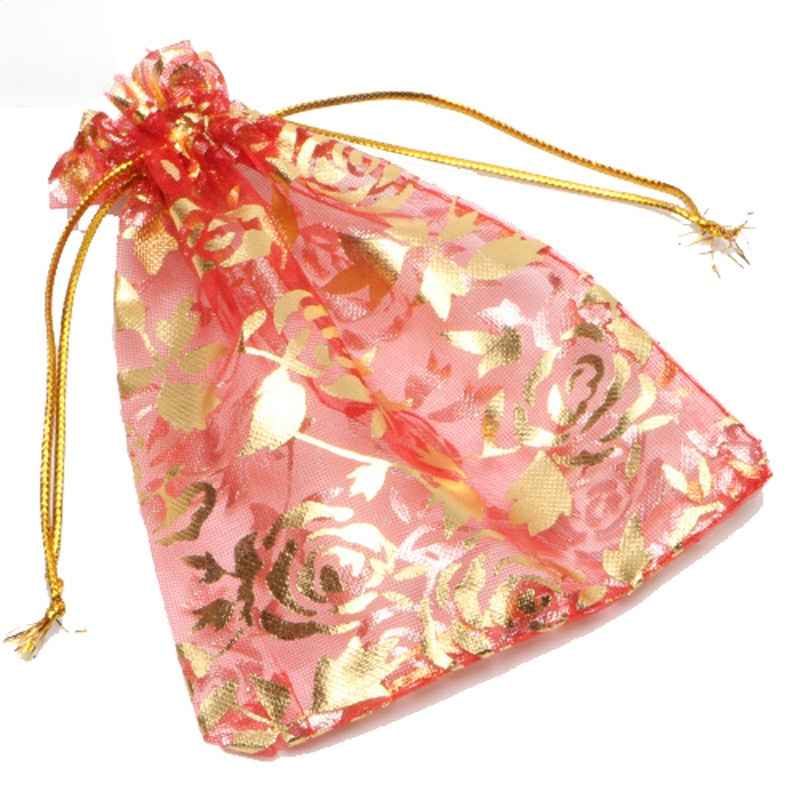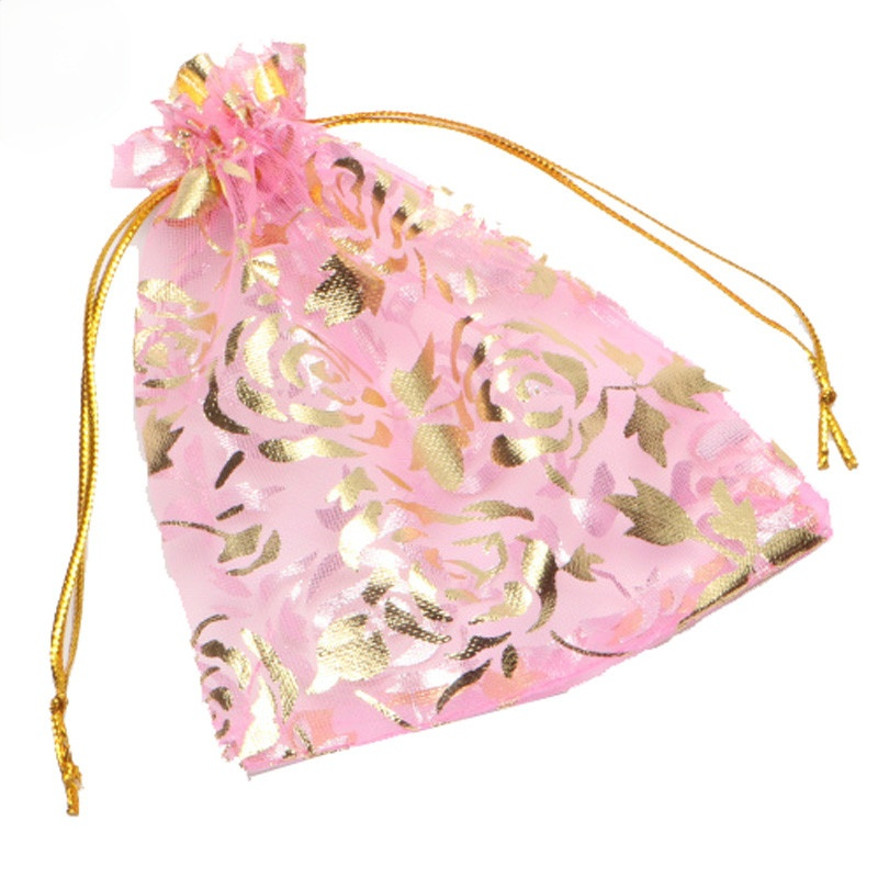 Pink /Red 10Pcs/Lot Organza Jewelry Wedding Gift Pouch Rose Draw String Candy Birthday Party New Year Holiday Gift Bag