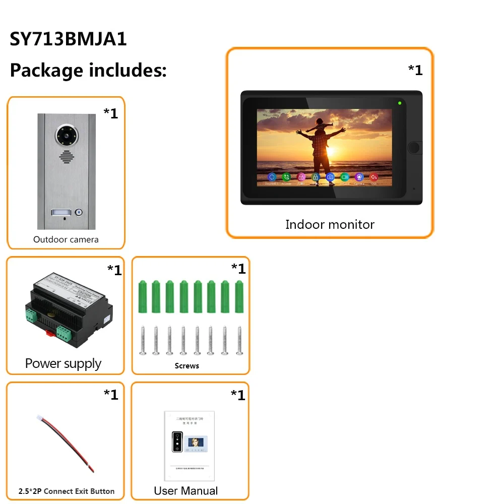 По 2-проводной системы требуется только два провода, мощность, аудио, видео, а также контрольный сигнал все представленные в 2-силовой кабель, кабель из алюминиевого сплава, не полярности, центральный источника питания. Используйте подключаемые соединители и DIP-переключатели для быстрой установки. Интегрированные многофункциональные функции с простой операцией делают систему более привлекательной, гибким кабельным подключением к проводу, поддержкой входа, разветвления и смешивания Режим. Двойная связь между внутренними единицами, когда внутренний монитор подключен к беспроводному Wi-Fi роутеру, вы можете подключить мобильный телефон к внутреннему монитору, затем мобильный телефон также может записывать видео или открывать дверь и т. Д.