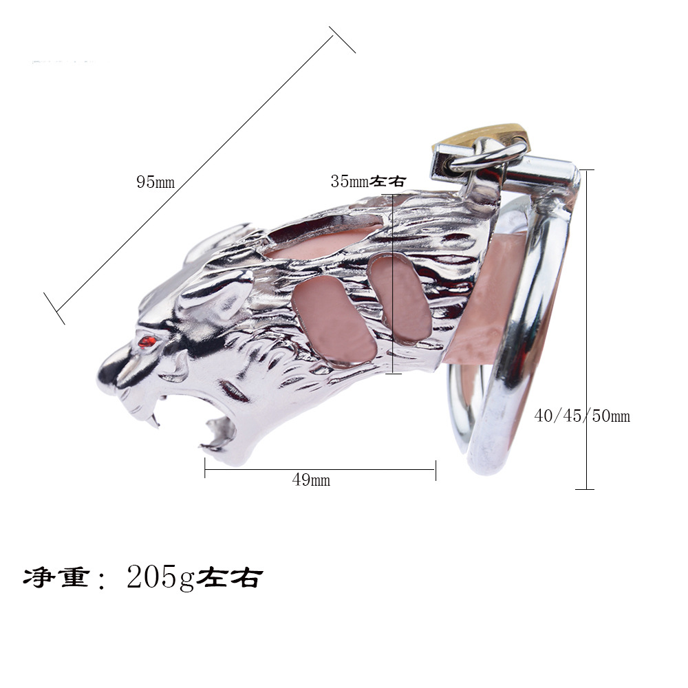 Мужское устройство целомудрия голова тигра выдалбливают целомудрие замок петух клетка 3 размера кольца с латунным замком Блокировка секс-игрушки WBHH-02
