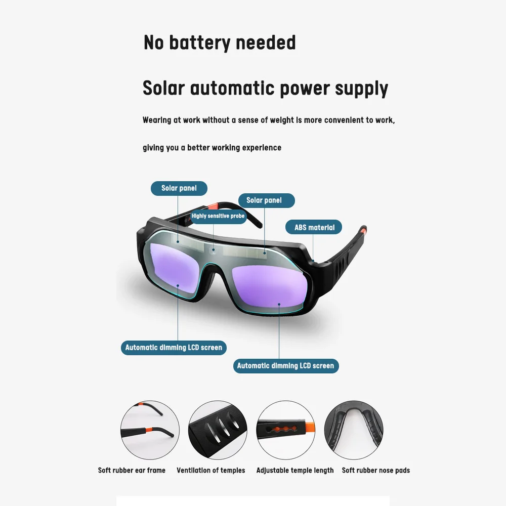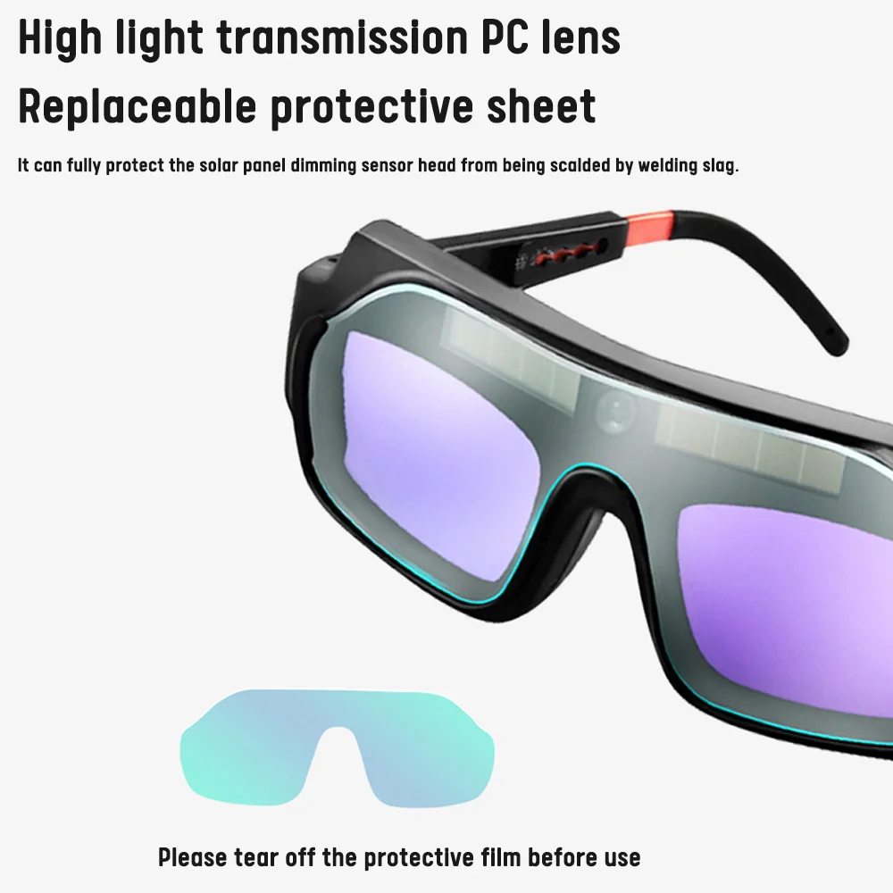 2. Противоударная Защитная линза: передняя часть очков оснащена противоударной защитной линзой для обеспечения его использования. Предотвращает брызги от повреждения затемняющего экрана и очков.