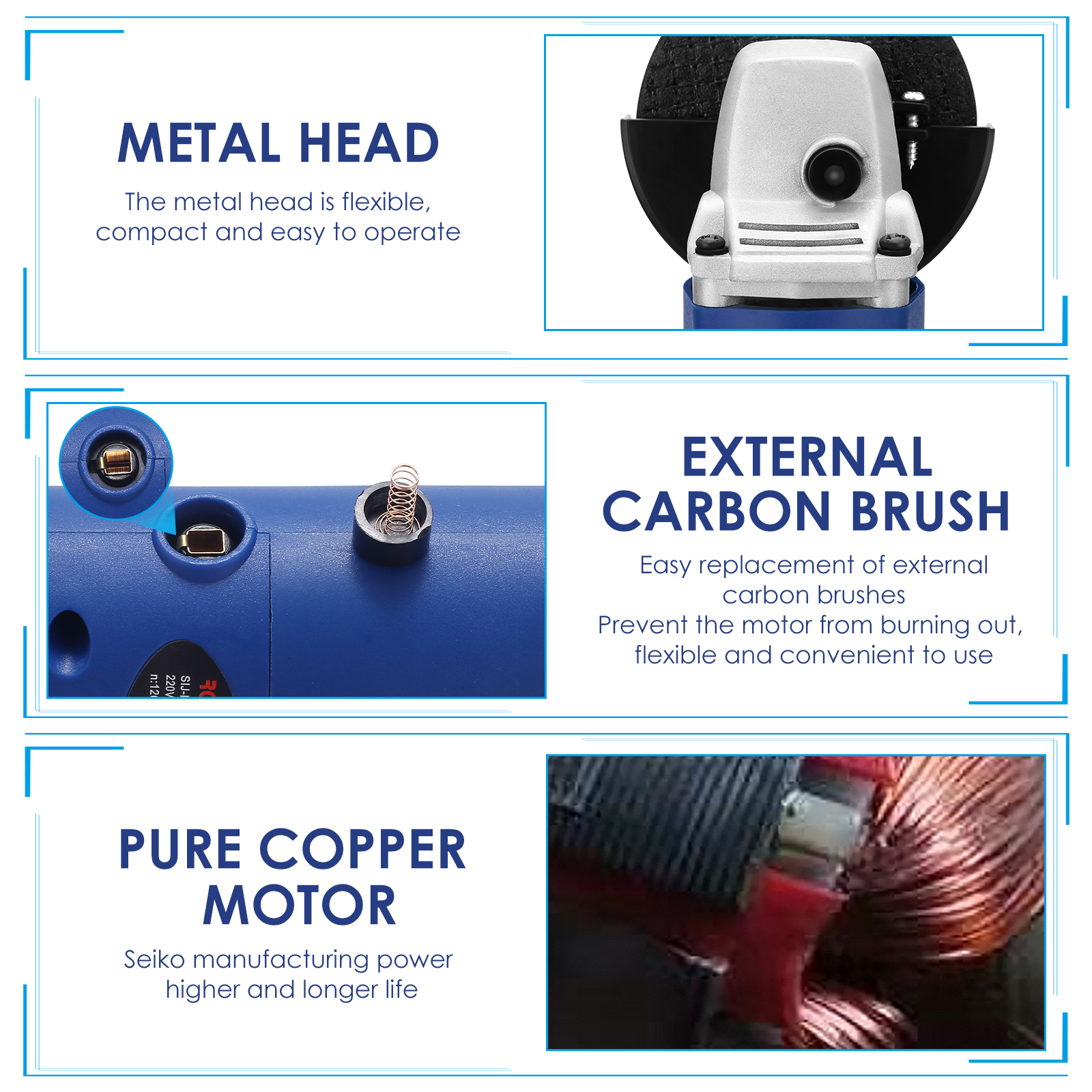Металлический чехол с зубчатой передачей обеспечивает долговечность и долгий срок службы Блокировка шпинделя для легкого изменения аксессуаров Узкий корпус для удобного захвата Инструмент для резки, шлифования, гравировки, полировки, резьбы, шлифования и крафта, вы можете изменить оценку резьбы, полировки и так далее.Спецификация: