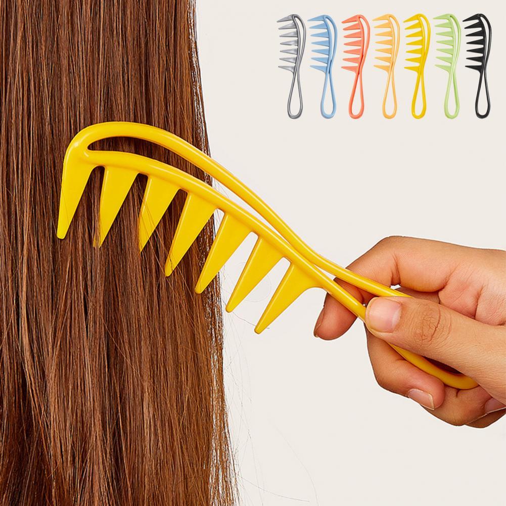 Расческа для укладки волос ярких цветов, полый дизайн с зубами акулы, яркие цвета, Широкие зубы, пластиковые кудрявые волосы для укладки, расческа для влажных и сухих волос двойного назначения