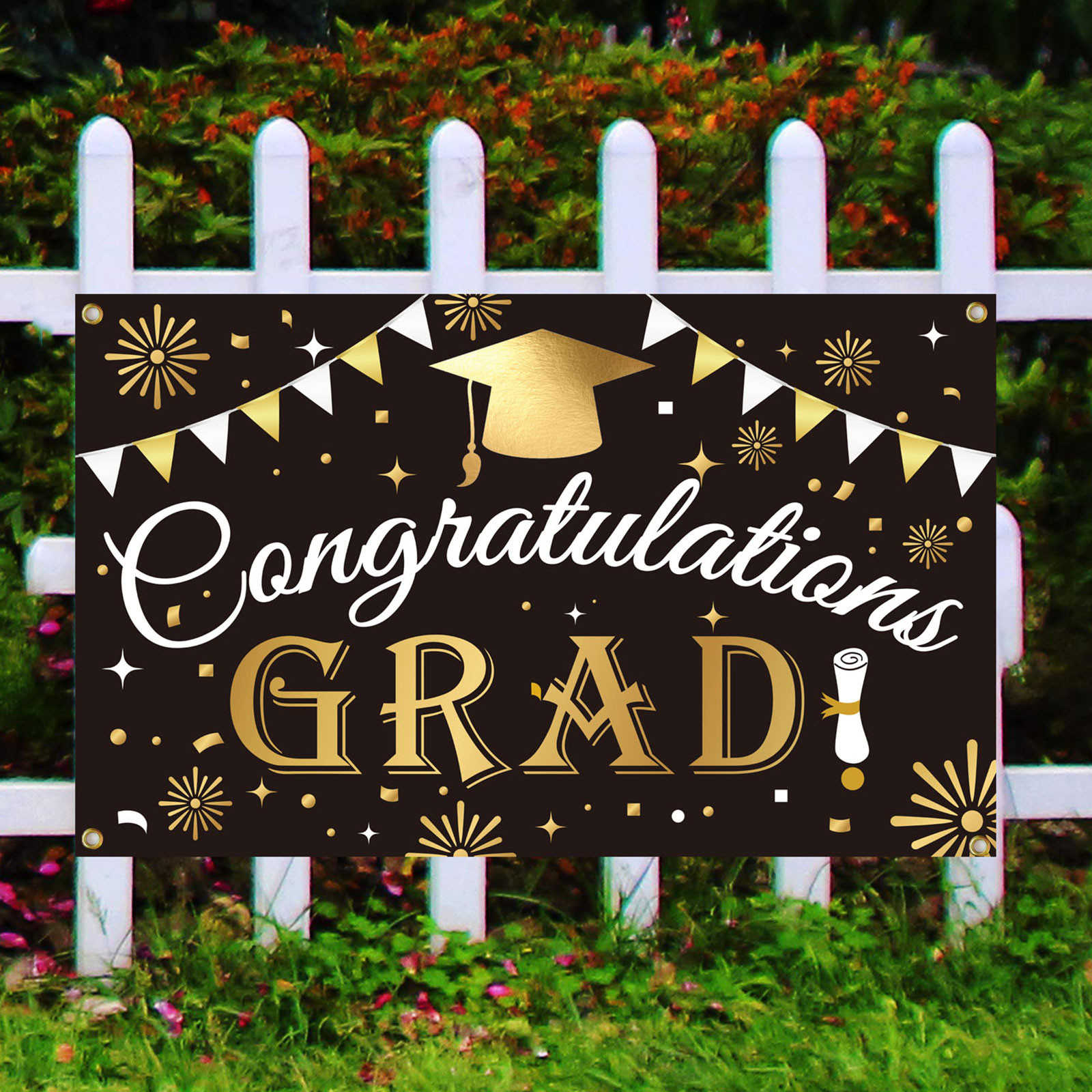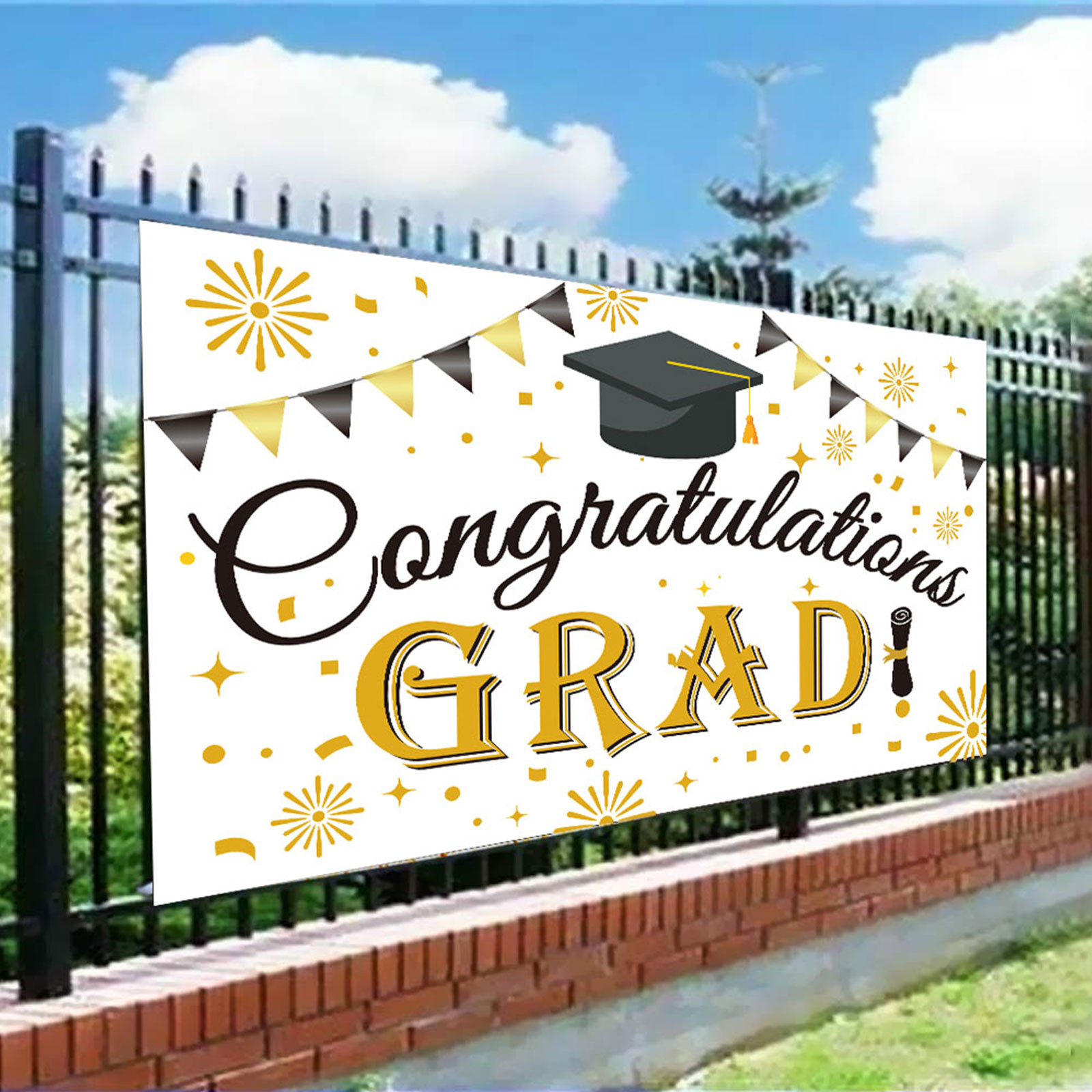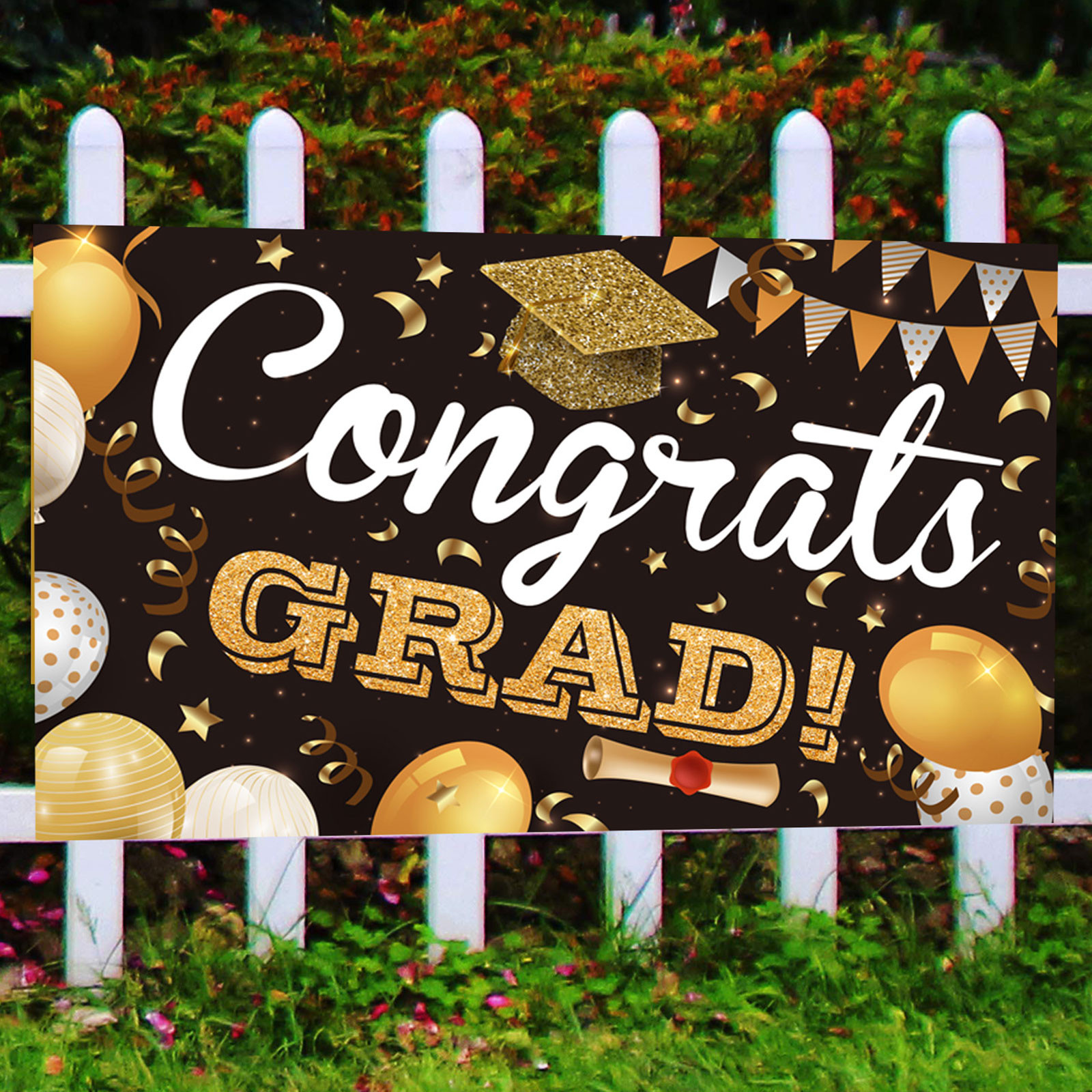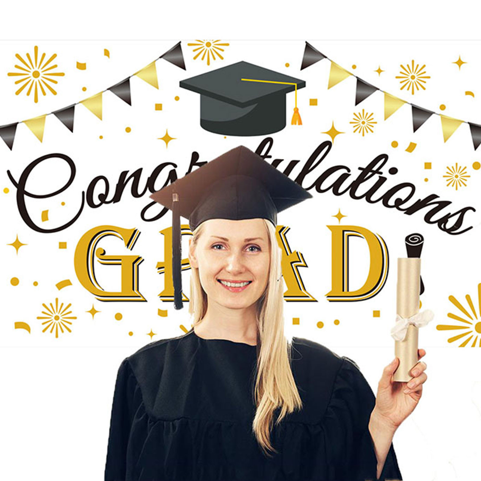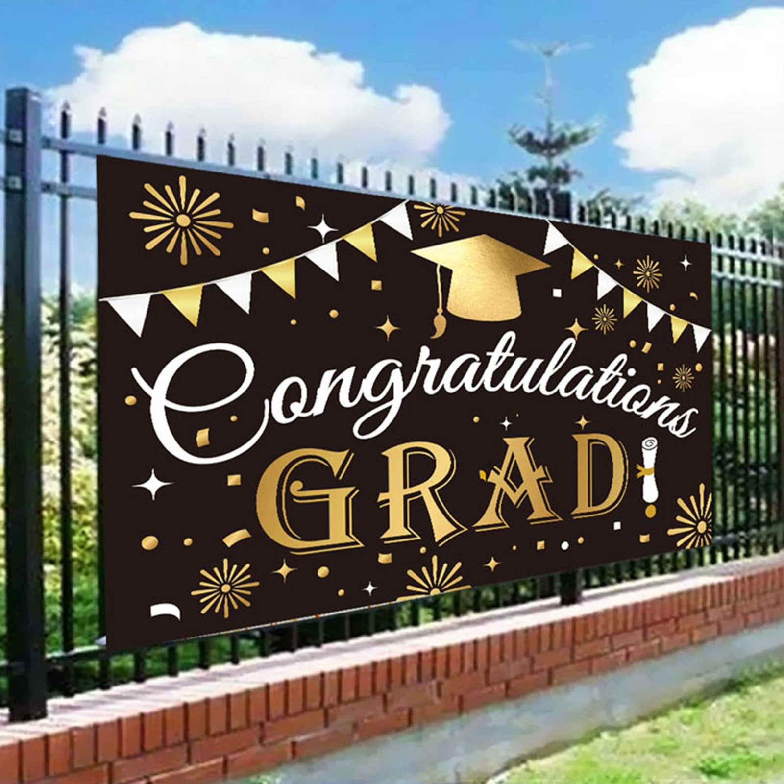 С выпускной эмблемой, звезды как тема декоративного баннера, что означает ваше будущее так же ярко, как звезды.Узор баннеров напечатан отдельно, с использованием швейной обработки, качество отличное.