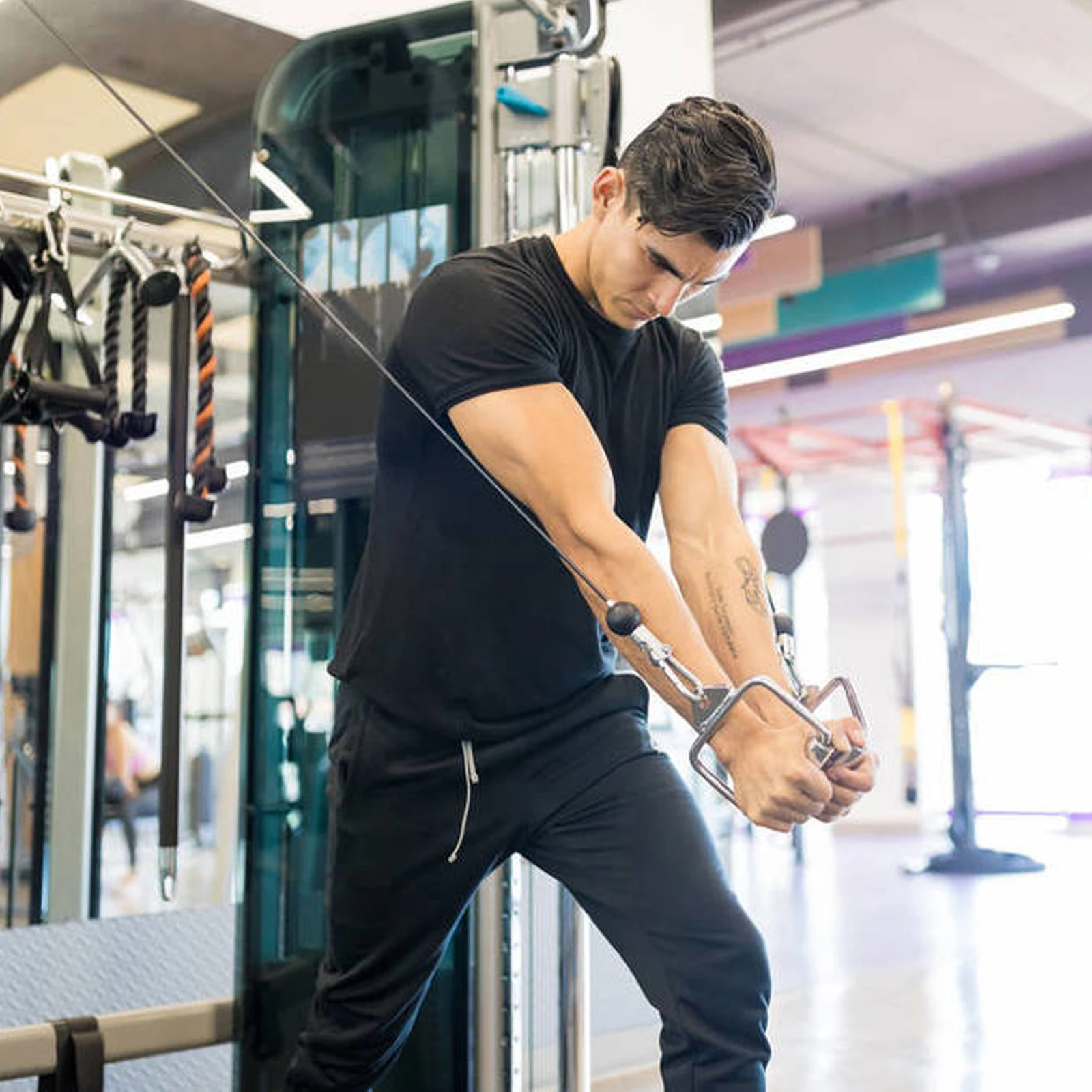 ★Двойная d-образная ручка + карабин★Хромированная прочная стальная ручка, специальная рельефная рукоятка для нескользящей и удобной рукоятки, обеспечивает безопасное сцепление и защиту во время тренировок. Поддержка до 800 фунтов