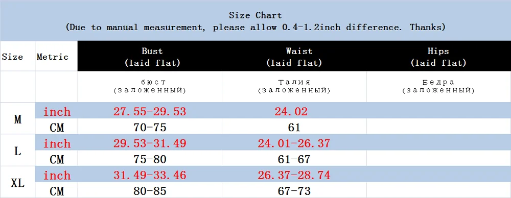 Теплая подсказка: 1. Если вы не уверены в размере, пожалуйста, свяжитесь с нашей службой поддержки клиентов или оставьте сообщение, спасибо 2. Подробной таблицей размеров информация о товаре: единица измерения-сантиметр/измерения: 1 дюйм = 2,54 см, 1 см = 0,39 дюймов 3.To при выборе размера точнее, вы можете выбрать подобную одежду, чтобы сравнить детали размера, О длине, обхвате груди, талии, плечах. Пожалуйста, ознакомьтесь с информацией о размерах перед выбором размера, спасибо! 4. Если ваши измерения находятся между двумя размерами, советуем выбрать больший размер. 5. При ручном измерении возможна определенная погрешность в 1-3 см 6. Разные компьютерные экраны могут отображать разные цвета, даже если они одного цвета. Поэтому, пожалуйста, учитывайте разумную разницу в цвете, фотографии или наружная съемка и съемка в помещении будут иметь определенную разницу в цвете