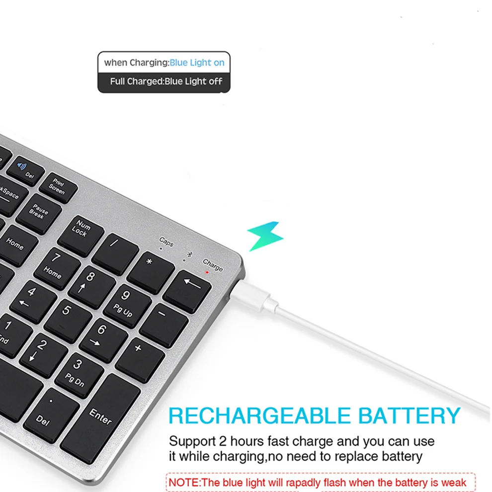 Перезаряжаемая и энергосберегающая: Встроенная перезаряжаемая литиевая батарея 280 мА · ч, эта комбинированная клавиатура и мышь могут быть легко заряжены в комплектеМикроЗарядный кабель. Он не используется более 30 минут, автоматически переходит в режим сна, чтобы сэкономить энергию и нажмите любую клавишу, чтобы разбудить его.