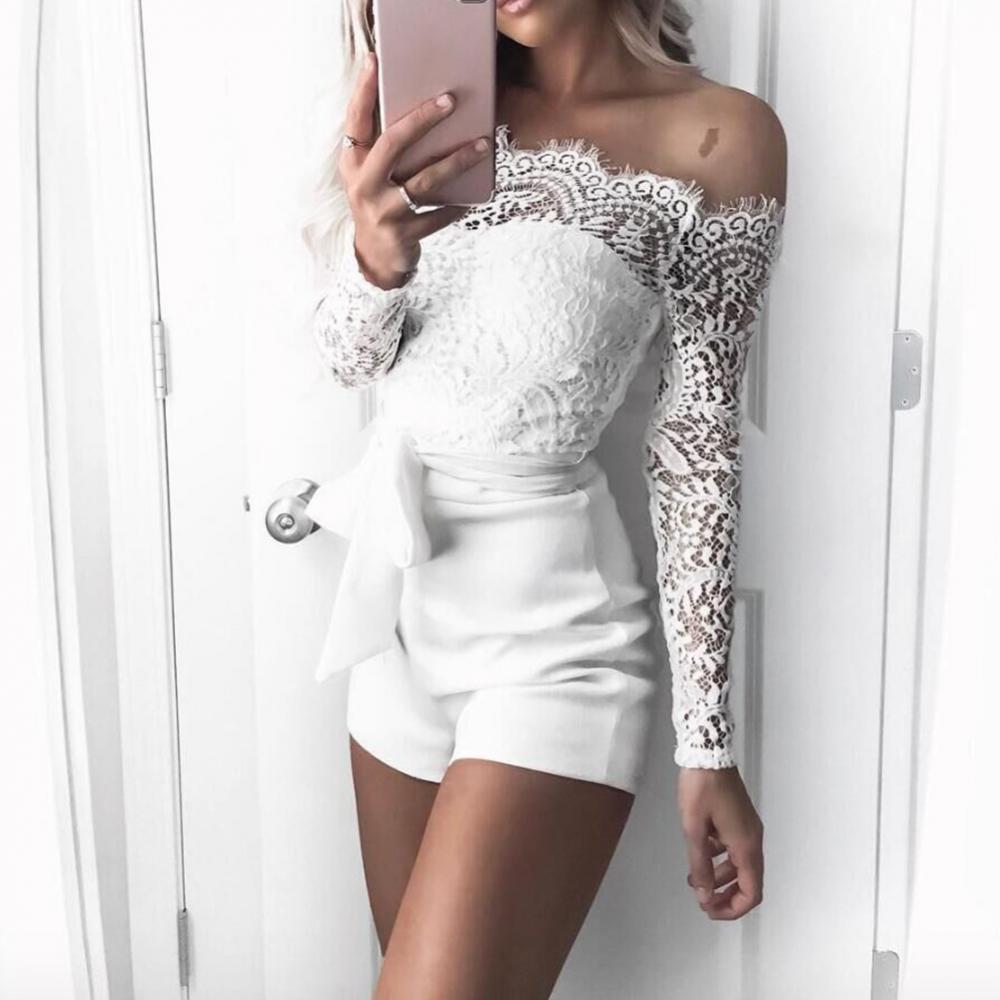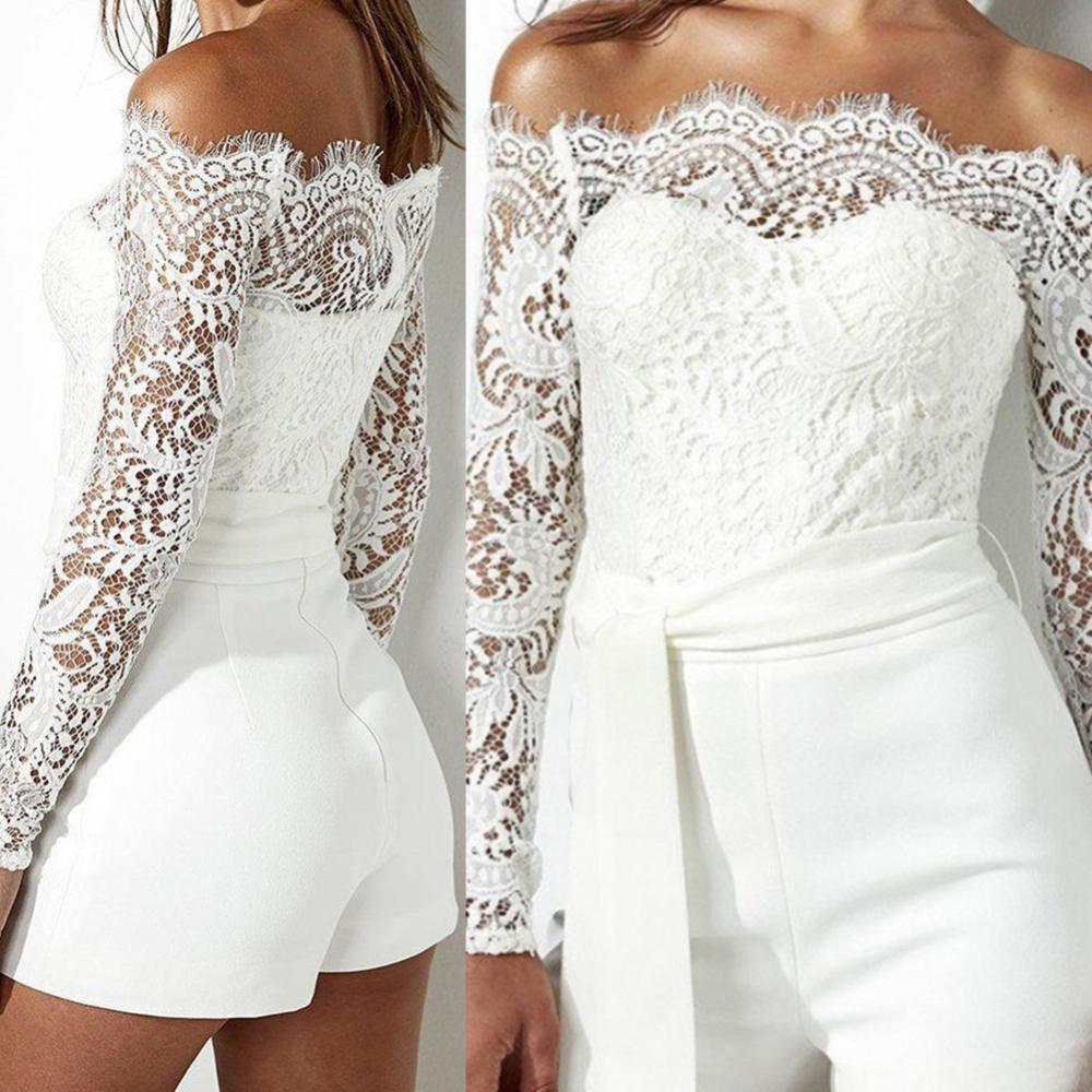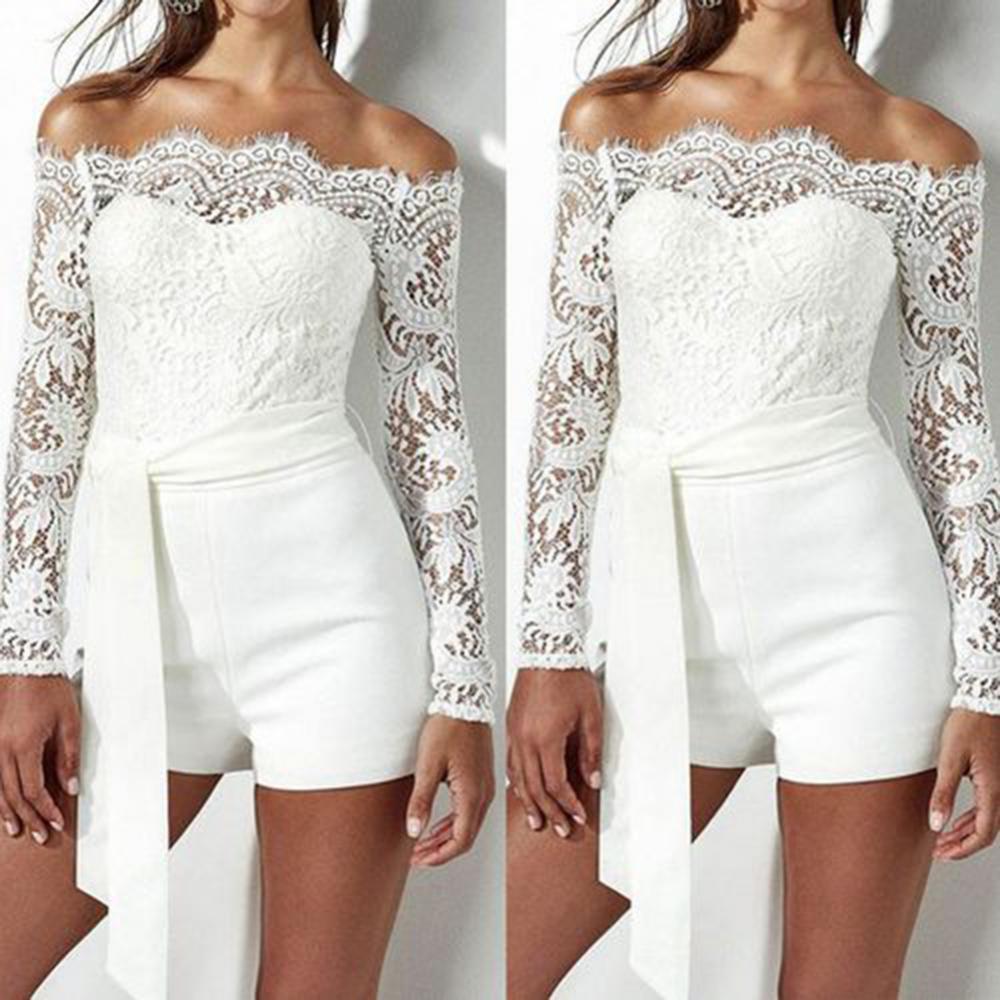 Вечерние, сексуальные, женские, однотонные, с открытыми плечами, с длинным рукавом, бандажный кружевной комбинезон