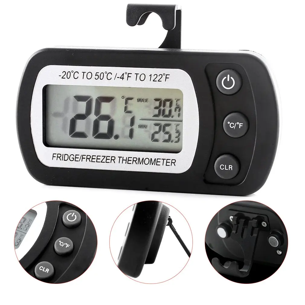 Особенности: 1. Два способа разместить в холодильнике, вы можете использовать крюк поместите устройство на провод в холодильнике или вы можете стоять, чтобы разместить термометр на любой плоской поверхности. 2. Термометр отслеживает высокие и низкие температуры, записанные для холодильника и морозильной камеры, вы можете легко контролировать изменение температуры. 3. Компактный и портативный: будучи таким мини и легким, этот продукт не занимает много места и может быть легко удален. Описание: Компактный и точный, Этот термометр для холодильника и морозильной камеры обеспечивает критические показания температуры для обеспечения безопасности пищевых продуктов. Характеристики: Цвет: белый, черный (опционально) Уровень водонепроницаемости: IPX3 Рабочее напряжение: 1,5 V Батарея: CR2032 Размер: 88,4*61,1*23,9 мм Диапазон измерения: -20 ~ 50 ℃ Дисплей точность: 0,1 ℃ Посылка включает в себя: 1 * Термометр для холодильника