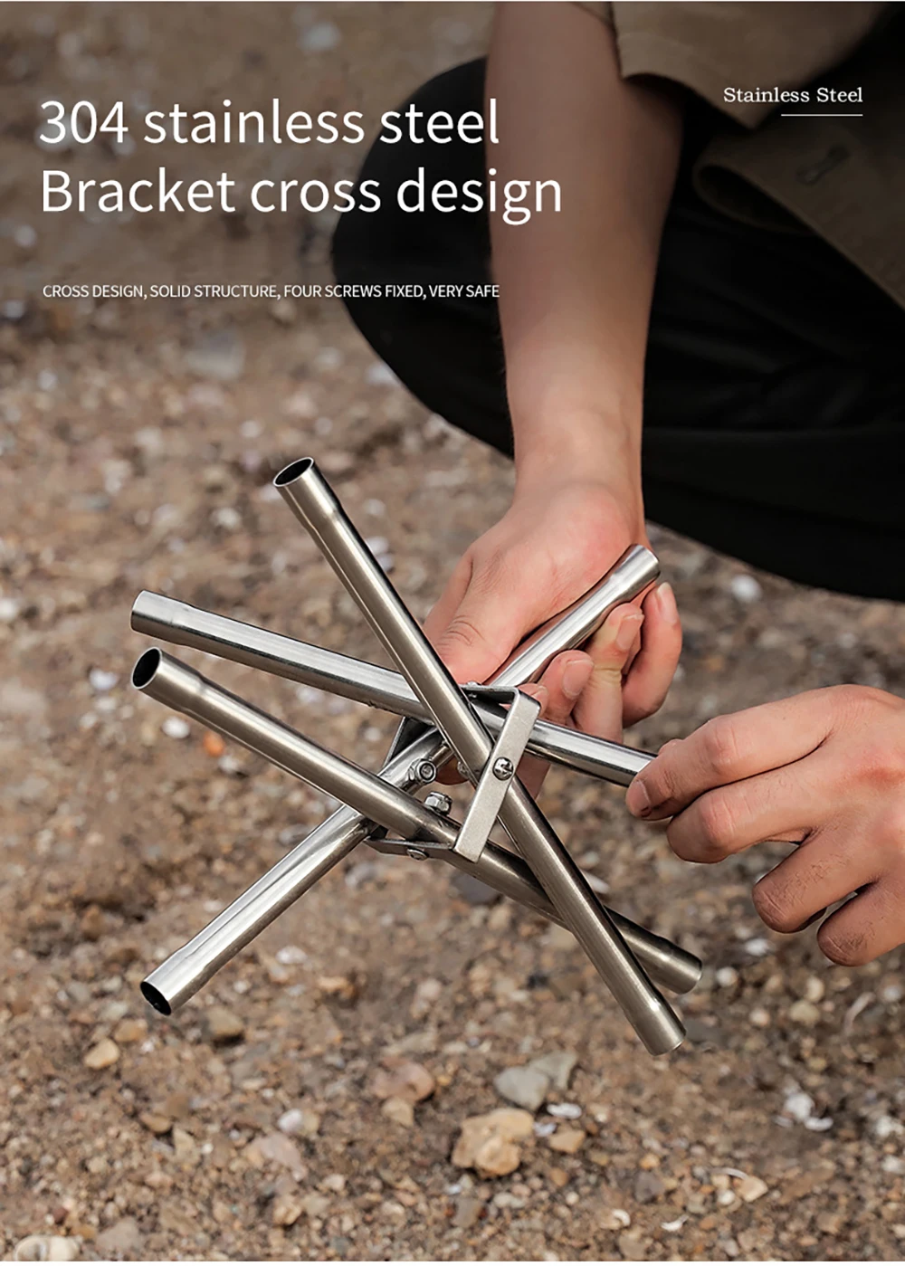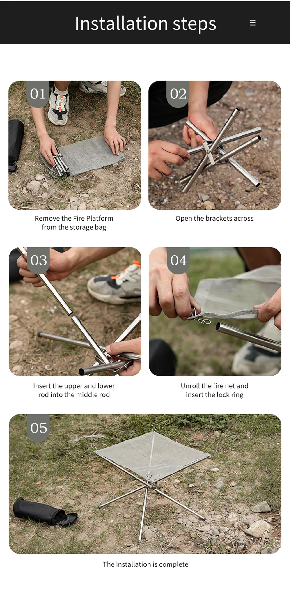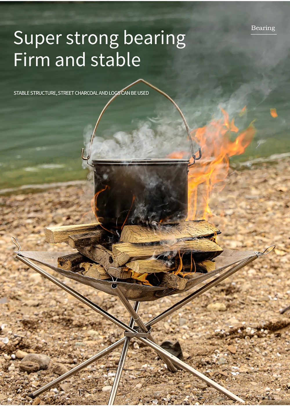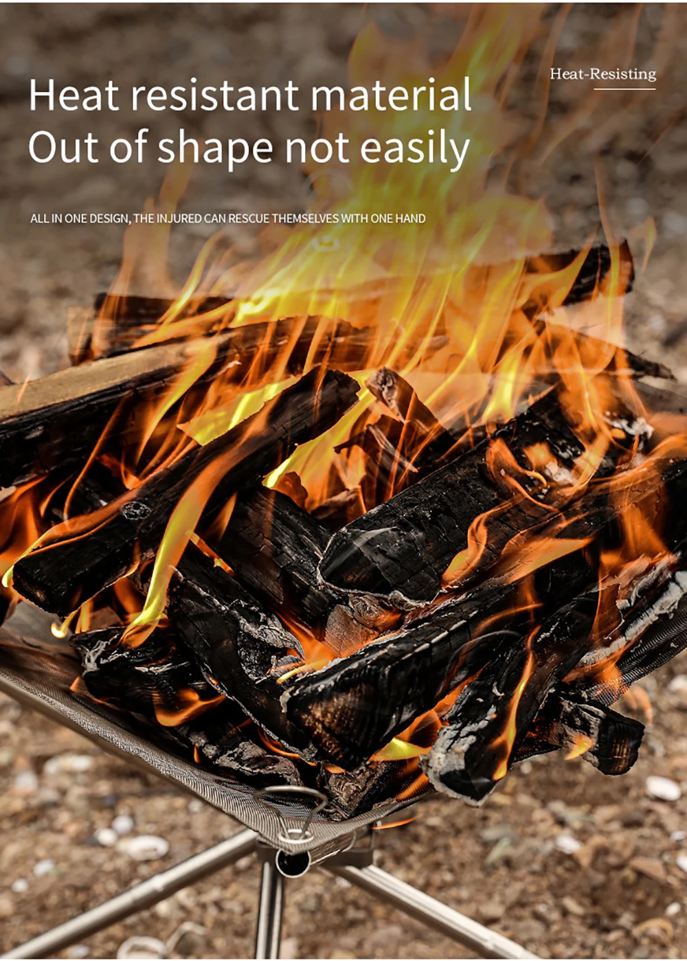 2. Портативная и мощная Грузоподъемность: Эта пожарная яма имеет скручиваемую сетку из нержавеющей стали и складные ножки. Поперечная структура 4 труб из нержавеющей стали имеет фиксированную функцию, чтобы предотвратить наклон пожарной ямы. Грузоподъемность 5 кг.