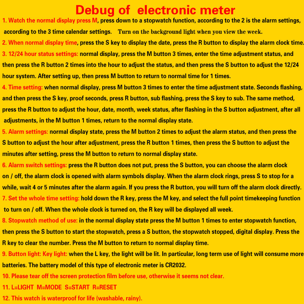 12. Водонепроницаемый: Эти электронные часы для обычных водонепроницаемых, можно мыть,